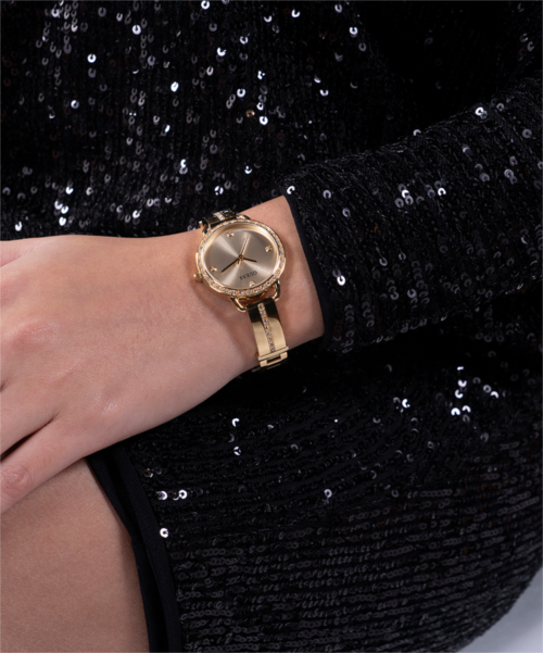 Orologio donna guess, GW0022L2, collezione bellini, movimento al quarzo, solo tempo, cassa in acciaio dorato 30mm, quadrante dorato, bracciale in acciaio dorato.