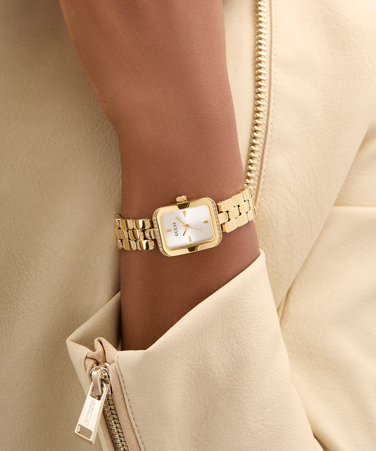Orologio donna guess, GW0865L2, collezione Isla, movimento al quarzo, solo tempo, cassa in acciaio dorato 22mm, quadrante silver, bracciale in acciaio dorato, resistenza all'acqua 3atm