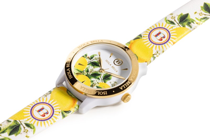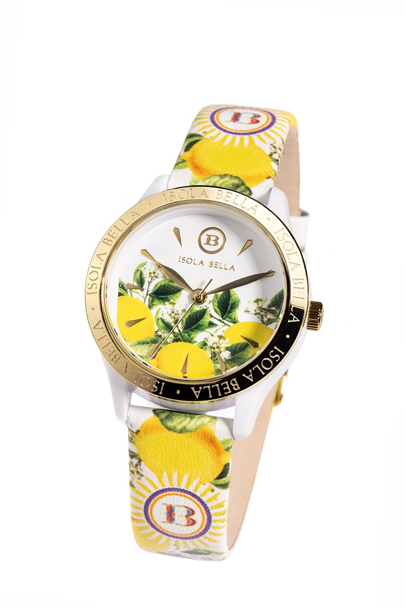 Orologio donna isola bella, 40000090, collezione orologio, movimento al quarzo, solo tempo, cassa in policarbonato 34mm, quadrante bianco con stampa, cinturino in pelle, resistenza all'acqua 5atm Il giallo del sole, il profumo degli agrumi, il candore dei fiori di limone.