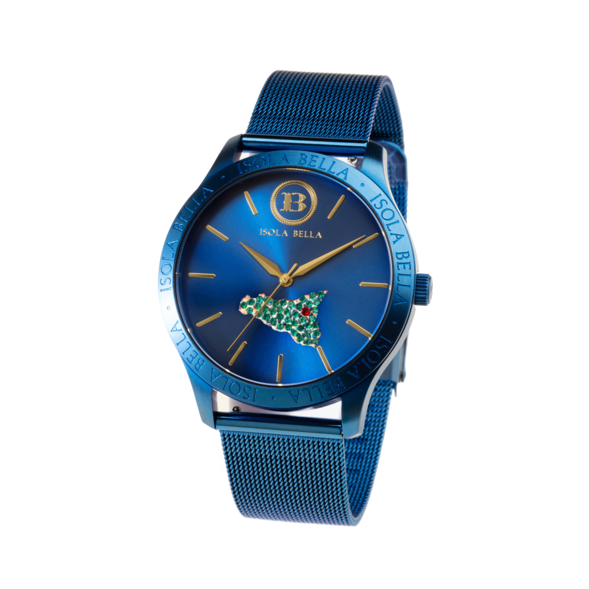 Orologio uomo isola bella, 40000096, collezione orologio, movimento al quarzo, solo tempo, cassa in acciaio blu 40mm, quadrante blu decorato con pietre, cinturino in maglia milano blu, resistenza all'acqua 5atm Elegante, attuale, iconico. La Sicilia da indossare con stile