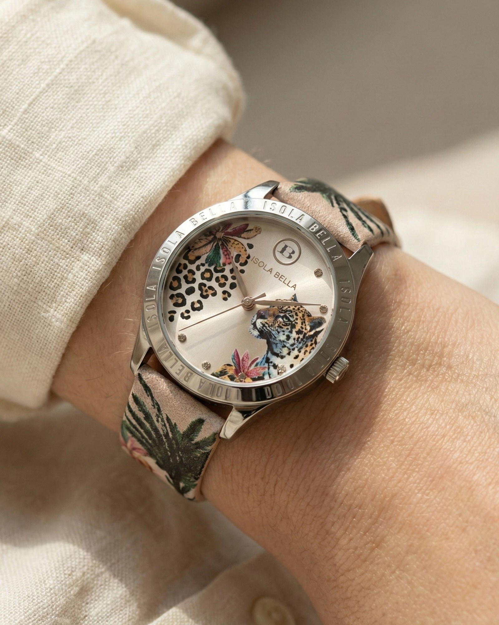 Orologio donna isola bella, 40000135, collezione orologio, movimento al quarzo, solo tempo, cassa in acciaio inox 36mm, quadrante con stampa e zirconi, cinturino in poliuretano, resistenza all'acqua 5atm Afferma la tua personalità con l’Orologio Ghepardo, un pezzo della collezione watch Isola Bella che celebra la bellezza felina e selvaggia.