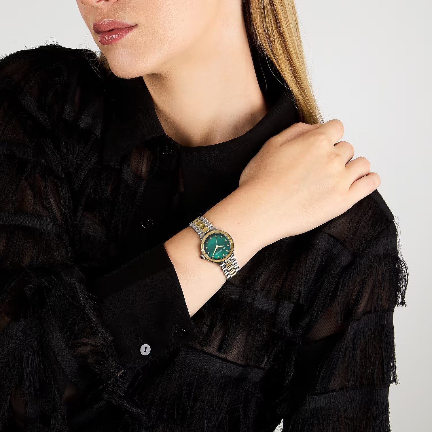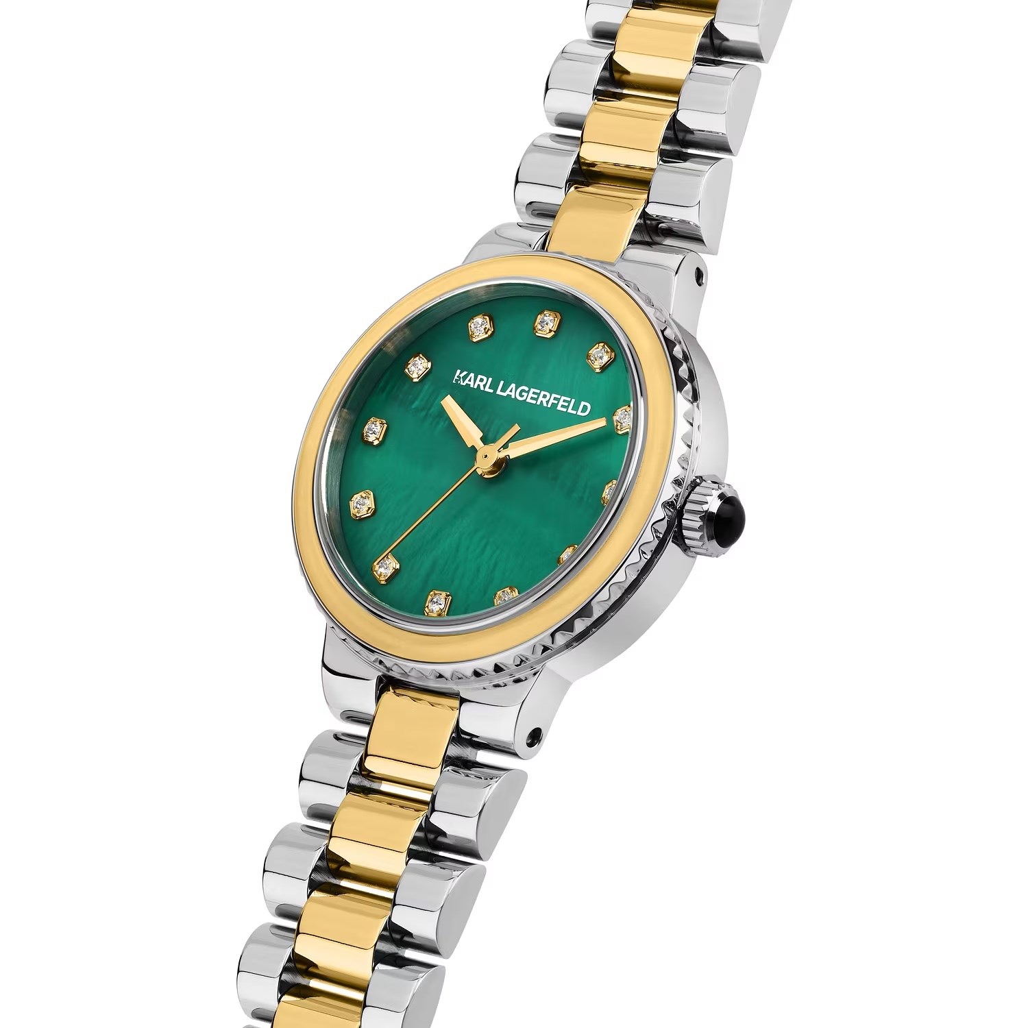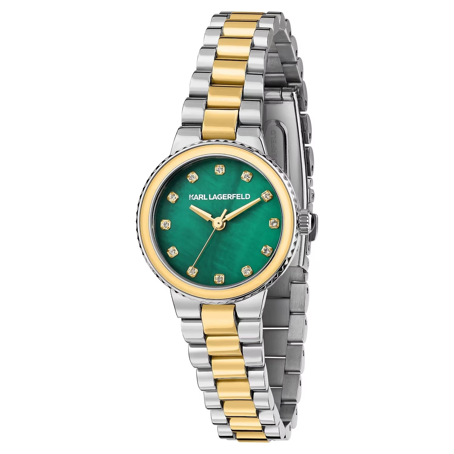 Orologio donna karl lagerfeld, R0553104511, collezione kaiser, movimento al quarzo, solo tempo, cassa in acciaio 28mm, quadrante verde, bracciale in acciaio, resistenza all'acqua 5atm