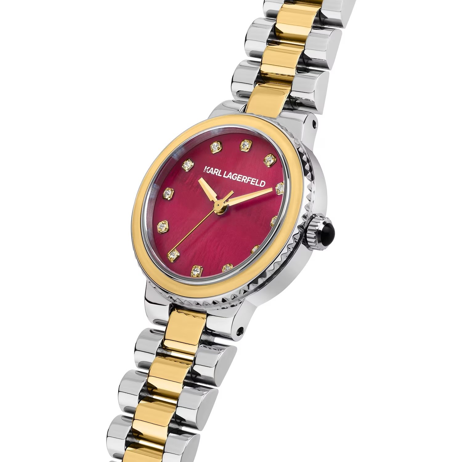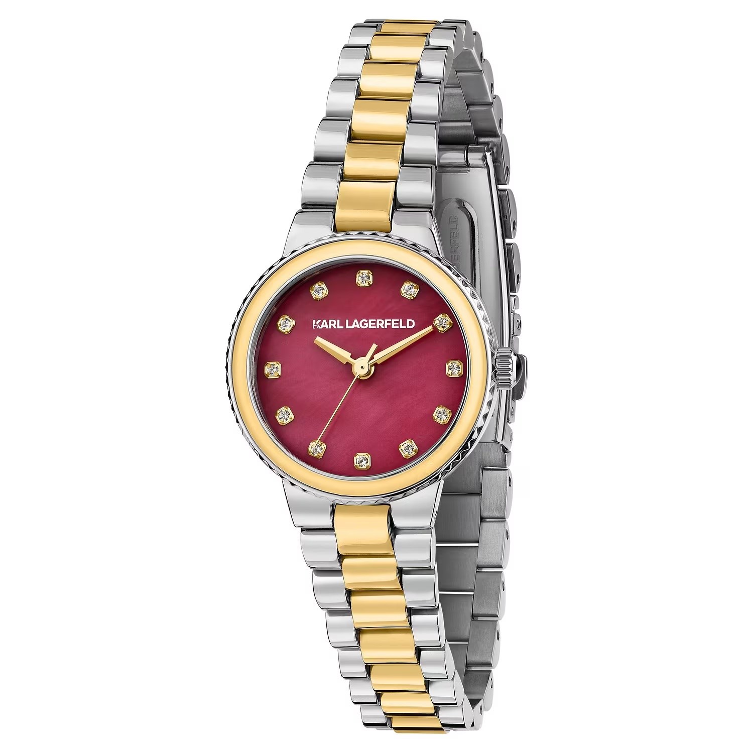 Orologio donna karl lagerfeld, R0553104512, collezione kaiser, movimento al quarzo, solo tempo, cassa in acciaio 28mm, quadrante rosso, bracciale in acciaio, resistenza all'acqua 5atm