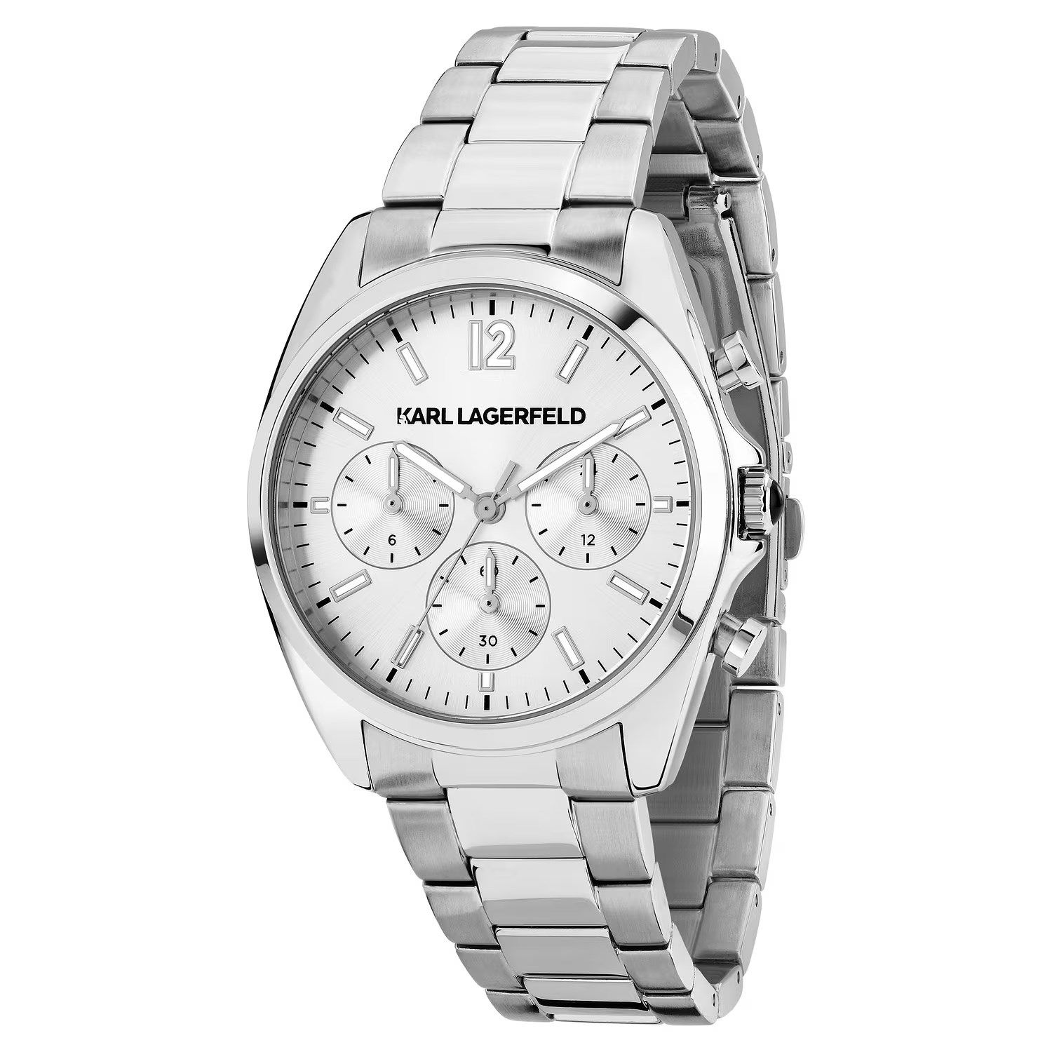 Orologio donna karl lagerfeld, R0553101503, collezione round essentials, movimento al quarzo, solo tempo, cassa in acciaio 38mm, quadrante bianco, bracciale in acciaio, resistenza all'acqua 5atm