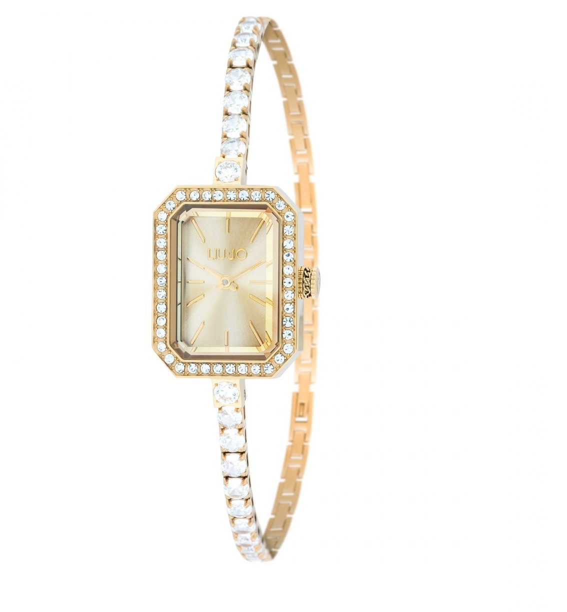 Orologio tennis donna liu jo, TLJ2328, collezione brilliant claire, movimento al quarzo, solo tempo, cassa in acciaio dorato 20mm x 26mm, cinturino in acciaio dorato con cristalli bianchi, resistente all'acqua 3atm