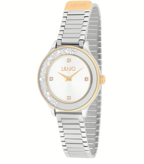 Orologio donna liu jo, TLJ2344, collezione dancing shine, movimento al quarzo, solo tempo, cassa in acciaio di colore Bicolor argento/ oro rosa dal diametro 32, 5 mm.