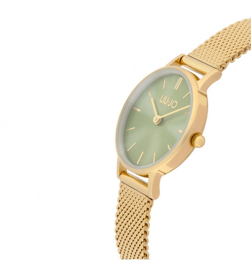 Orologio donna liu jo, TLJ2533, collezione fashion mini moonlight, movimento al quarzo, solo tempo, cassa in acciaio dorato 26mm, quadrante verde, cinturino in maglia milano dorato, resistenza all'acqua 3atm