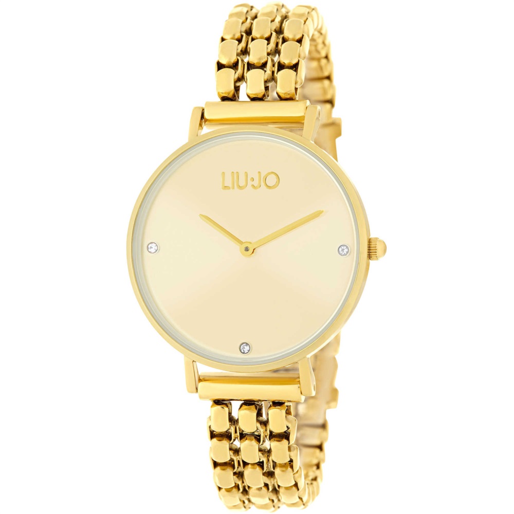 Orologio donna liu jo, Tlj1387, collezione framework, ; movimento quarzo, solo tempo, cassa in acciaio dorato 32mm, quadrante dorato, bracciale in acciaio dorato, resistenza all'acqua 3atm