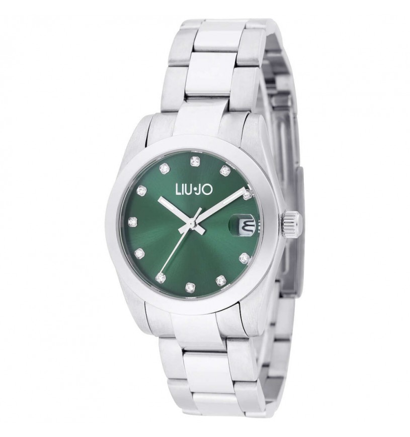 Orologio donna liu jo, TLJ2334, collezione juniper, movimento al quarzo, solo tempo, cassa in acciaio 34mm con quadrante verde, cinturino in acciaio, resistente all'acqua 5 atm