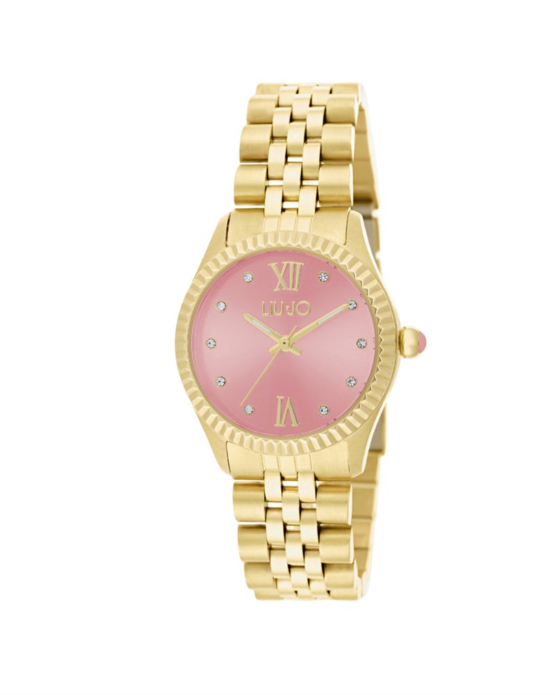 Orologio donna liu jo, TLJ2137, collezione tiny, movimento al quarzo, solo tempo, cassa in acciaio dorato 30mm, quadrante rosa, bracciale in acciaio dorato, resistenza all'acqua 5atm