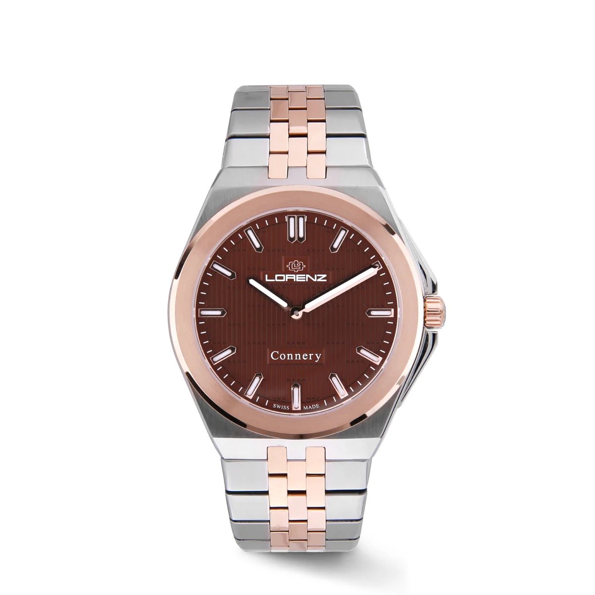 Orologio uomo lorenz, 090020DD, collezione connery, movimento al quarzo, solo tempo, cassa in acciaio 40mm, bracciale in acciaio, resistenza all'acqua 5atm