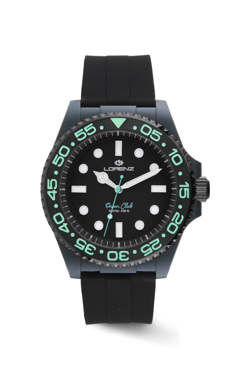 Orologio uomo lorenz, 030268DD, collezione ocean club, movimento al quarzo, solo tempo, cassa in super lega fusione tra fibra di nylon e fibra di carbonio 40mm, quadrante nero, vetro minerale, Lunetta sub con tempi di immersione realizzata in acciaio, con finitura IP black e numeri in smalto colorato, Fondo a pressione in acciaio finitura IP black, corona in acciaio a pressione finitura IP black, cinturino in silicone, resistenza all'acqua 10atm