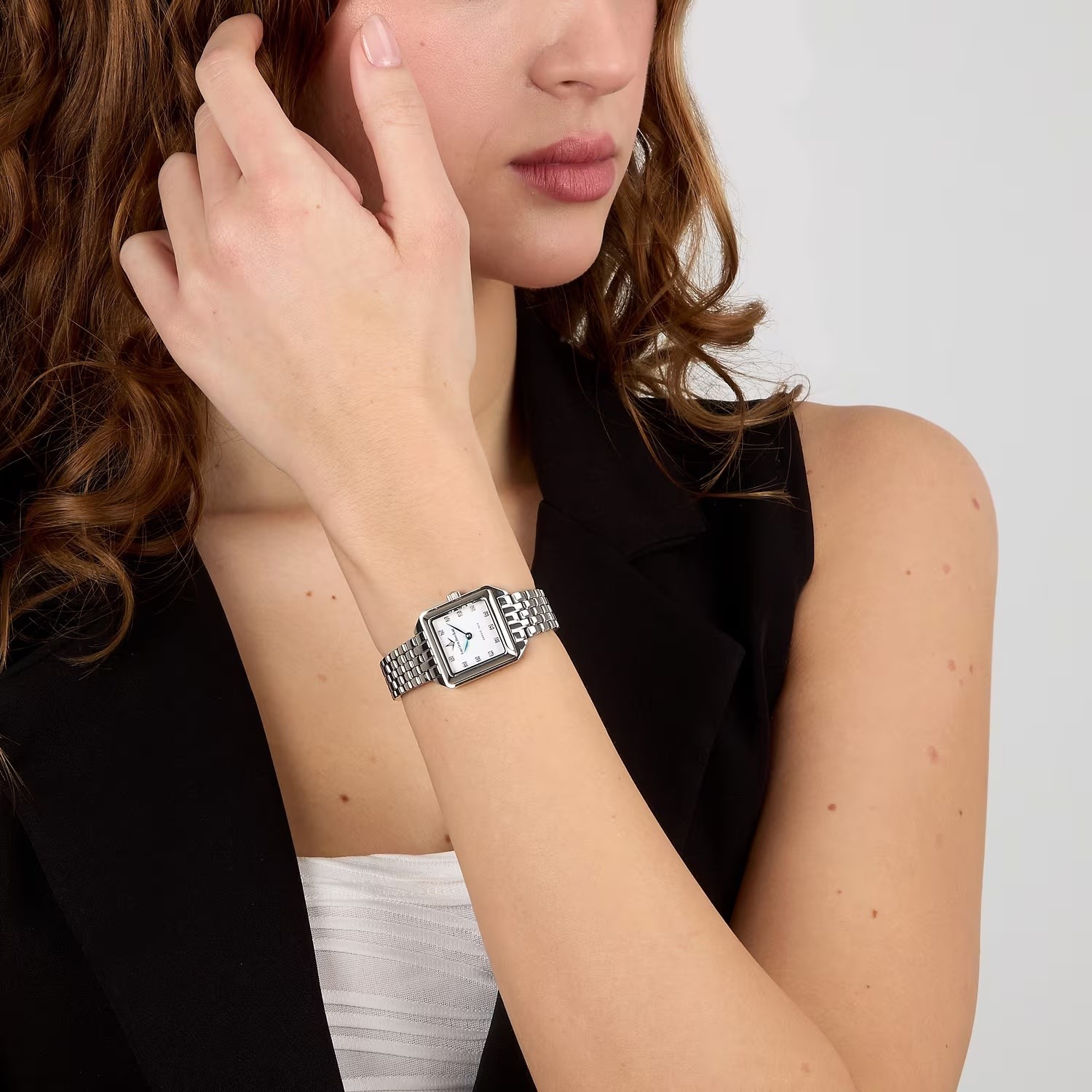 Orologio donna philip watch, R0453125505, collezione aurorae, movimento al quarzo, solo tempo, cassa in acciaio 24mmx30mm, quadrante bianco indici con diamanti, vetro zaffiro, bracciale in acciaio, resistenza all'acqua 5atm