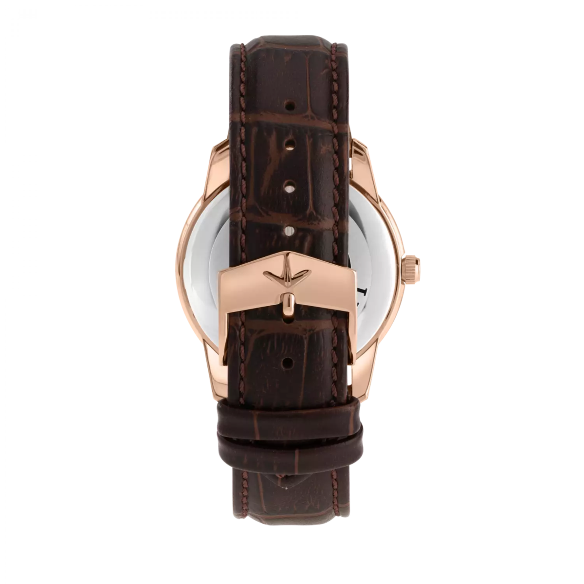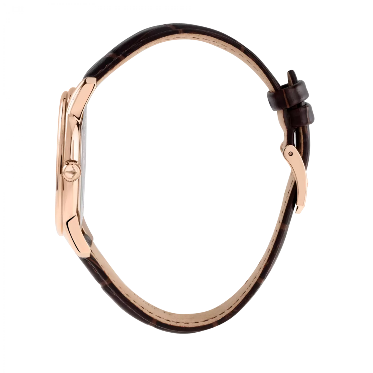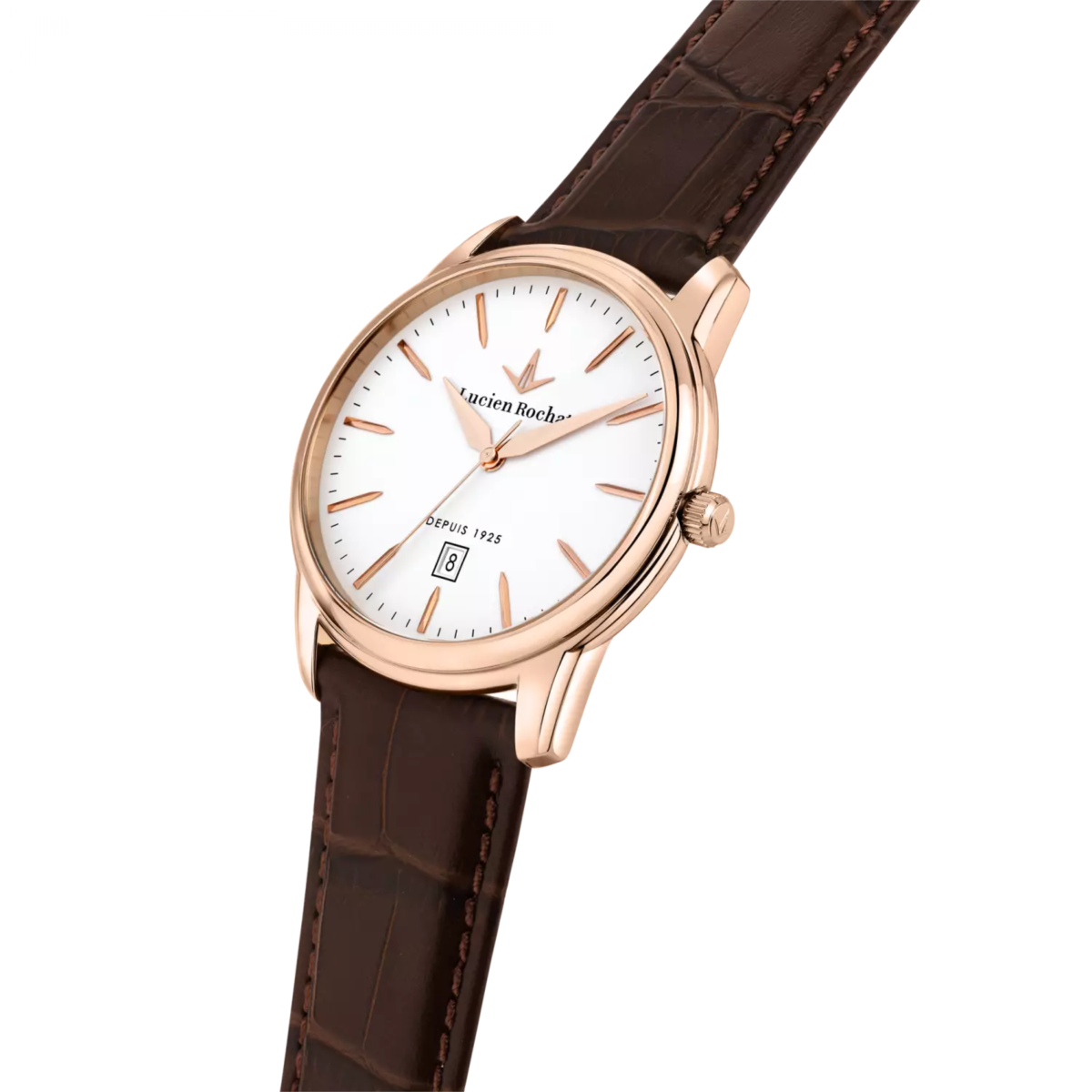Orologio uomo lucien rochat, R0451116002, collezione iconic, movimento al quarzo, solo tempo, cassa in acciaio rosa 40mm, quadrante bianco con datario, vetro minerlae+trattamento zaffiro, cinturino in pelle, resistenza all'acqua 3atm