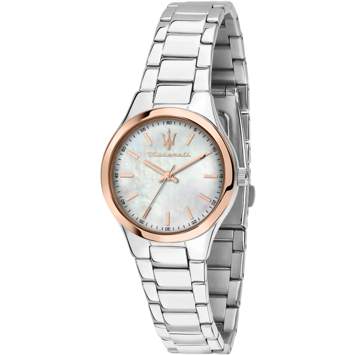 Orologio donna maserati, R8853151503, collezione attrazione, movimento al quarzo, solo tempo, cassa in acciaio 30mm, quadrante madreperla, bracciale in acciaio, resistenza all'acqua 5atm