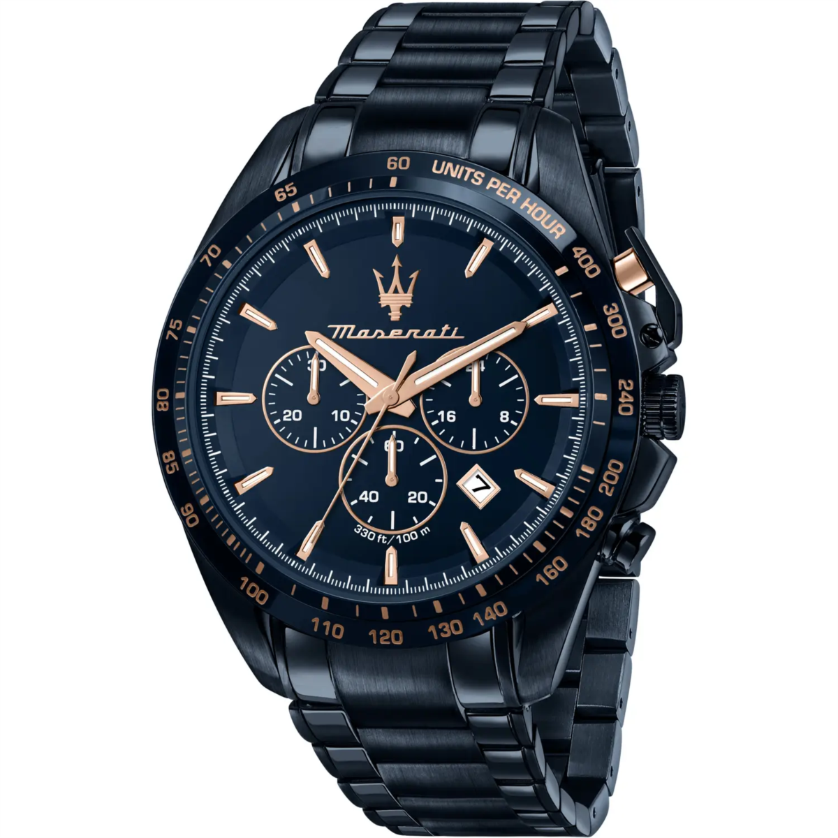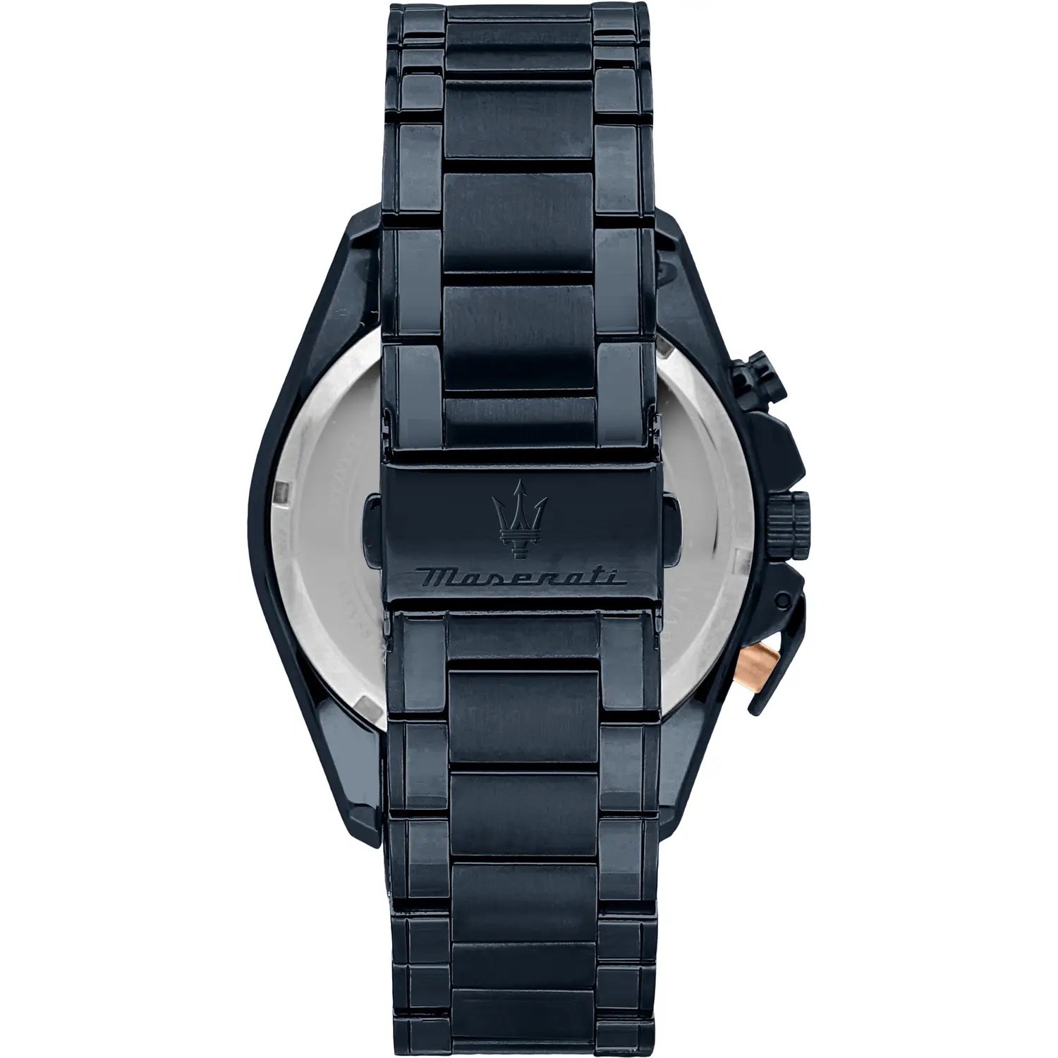 Orologio uomo maserati, R8873612054, collezione blu edition, movimento al quarzo, cronografo, cassa in acciaio 45mm, quadrante blu con datario, bracciale in acciaio, resistenza all'acqua 10atm