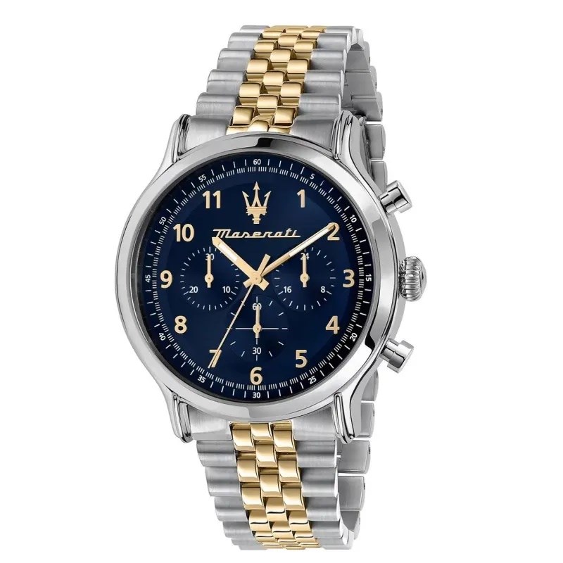 Orologio uomo maserati, R8873618030, collezione epoca, movimento al quarzo, cronografo, cassa in acciaio 42mm, quadrante blu, fondello e corona a vite, bracciale in acciaio, resistenza all'acqua 10atm