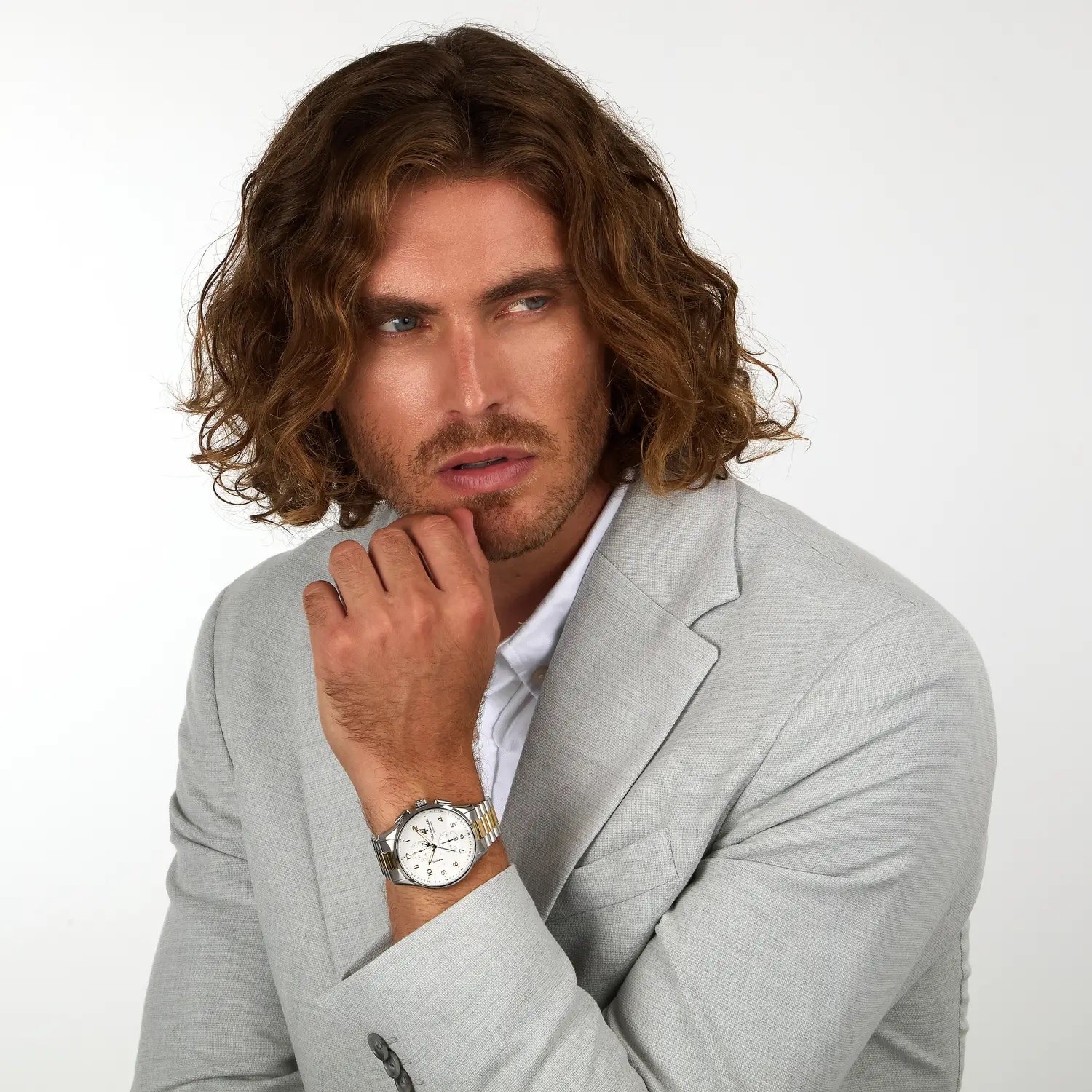 Orologio uomo maserati, R8873624003, collezione sorpasso, movimento al quarzo, cronografo, cassa in acciaio 42mm, quadrante bianco, fondello e corona a vite, bracciale in acciaio, resistenza all'acqua 10atm