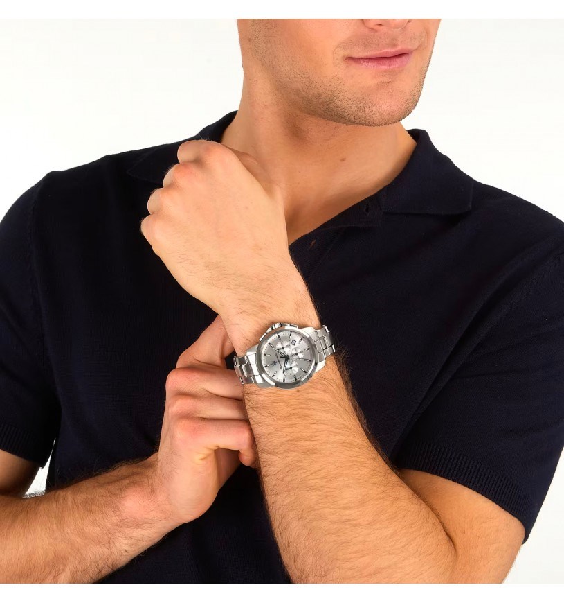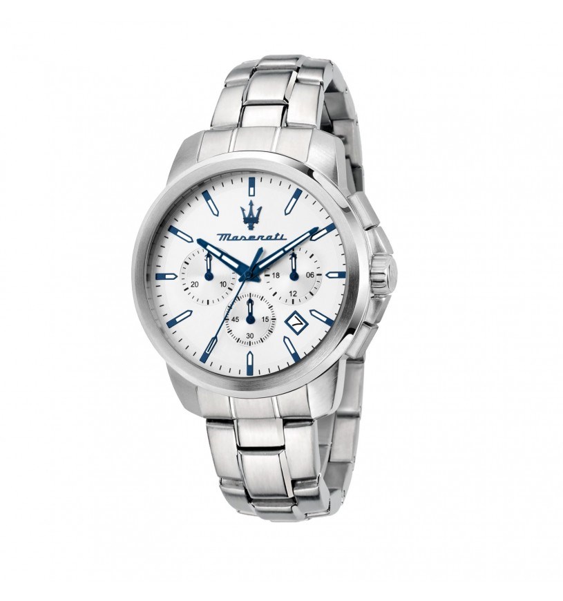 Orologio uomo maserati, R8873621048, collezione successo, movimento al quarzo, cronografo, cassa in acciaio 42mm, quadrante silver con datario, cinturino in acciaio.