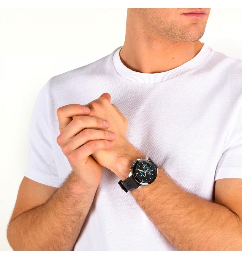 Orologio uomo maserati, R8871612047, collezione traguardo, movimento al quarzo, cronografo, cassa in acciaio 42mm, cinturino nero in gomma.