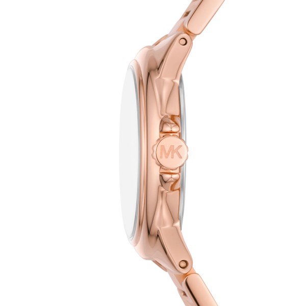 Orologio donna michael kors, MK7256, collezione camille, movimento al quarzo, solo tempo, cassa in acciaio rosa 33mm, quadrante bianco, bracciale in acciaio rosa, resistenza all'acqua 5atm