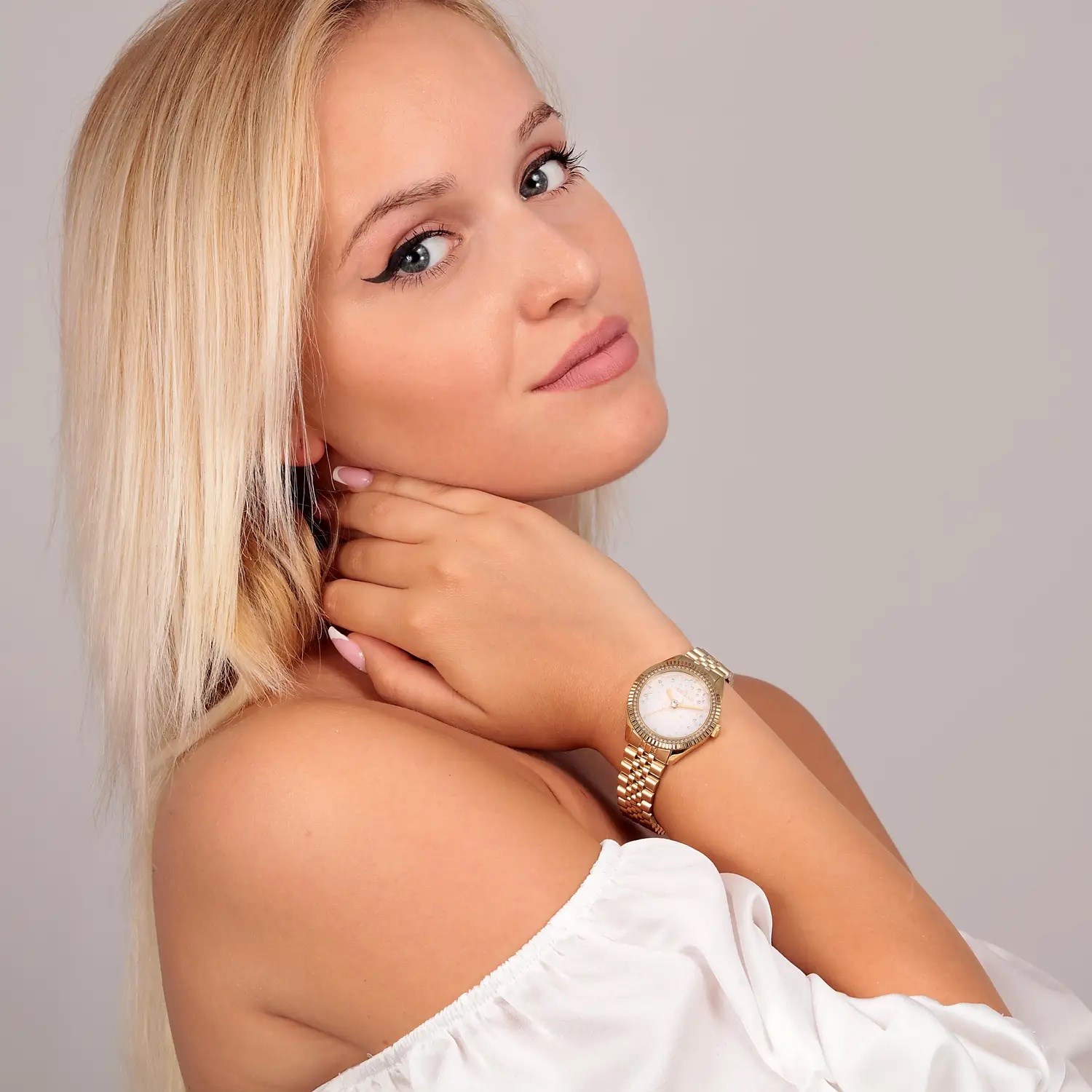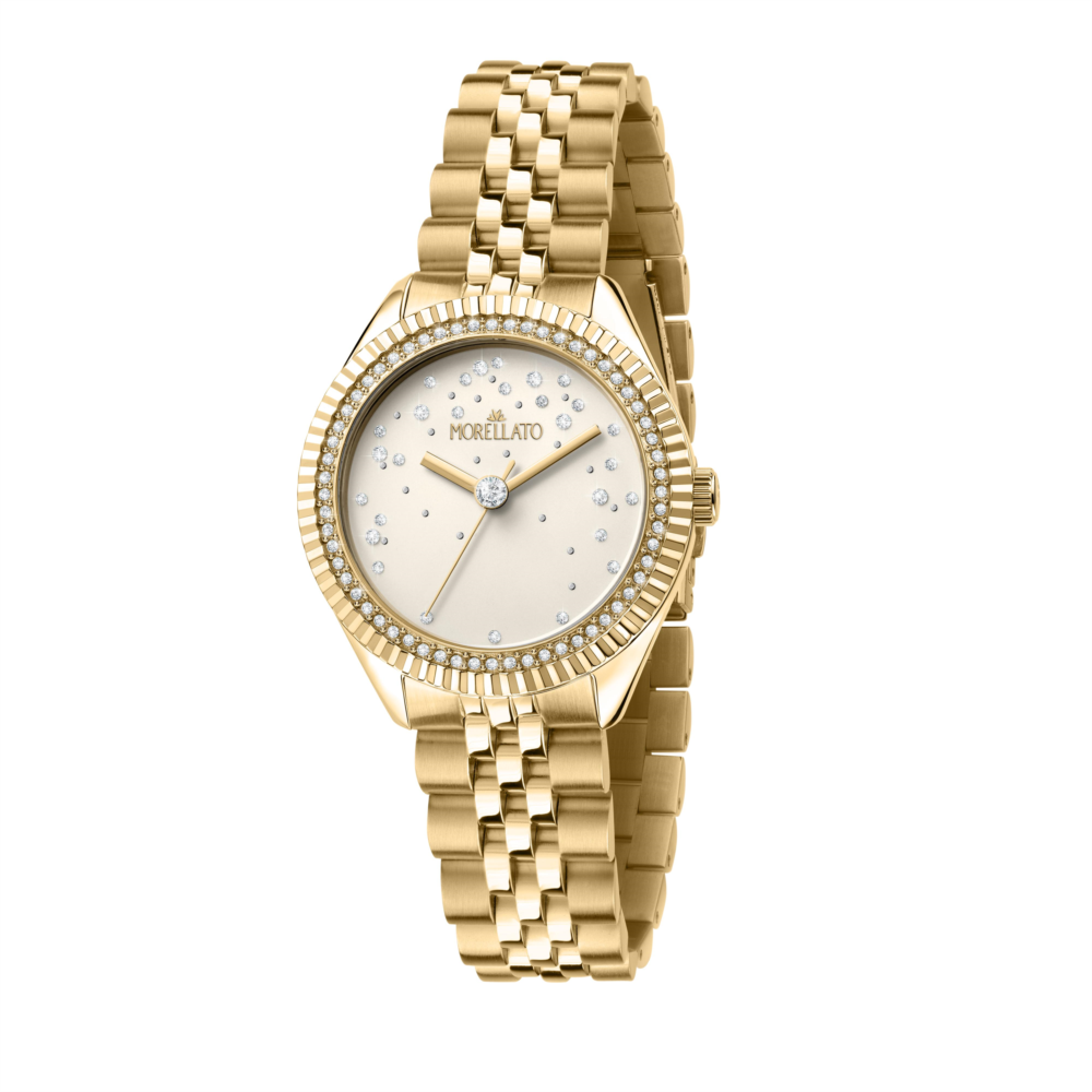 Orologio donna morellato, R0153165501, collezione magia, movimento al quarzo, solo tempo, cassa in acciaio dorato 34mm, quadrante dorato, bracciale in metallo dorato, resistenza all'acqua 3atm