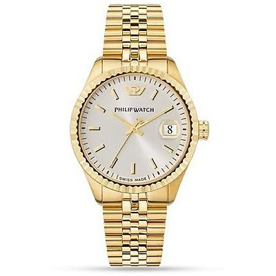 Orologio donna philip watch, R8253597087, collezione caribe, movimento al quarzo, solo tempo, cassa in acciaio dorato 38mm, quadrante con datario a bolla, bracciale in acciaio dorato, resistenza all'acqua 10atm