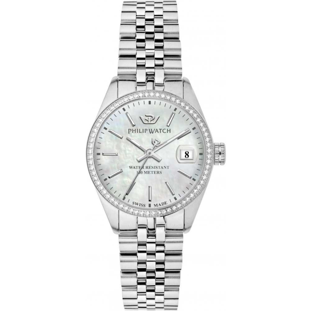 Orologio donna philip watch, R8253597538, collezione caribe, , movimento al quarzo, solo tempo, cassa in acciaio da 31 mm con lunetta di diamanti, quadrante madreperlato, cinturino in acciaio con maglia jubilèe, vetro zaffiro, chiusura Double push buckle, Water resistant 10 atm