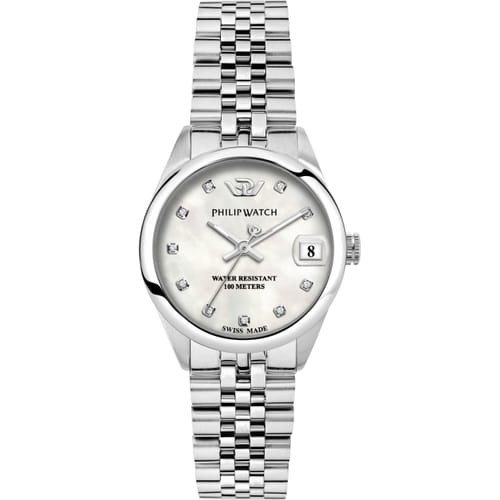 Orologio donna philip watch, R8253597619, collezione caribe, movimento al quarzo, solo tempo, cassa in acciaio 39mm, quadrante madreperla con datario a bolla, bracciale in acciaio, resistenza all'acqua 10atm