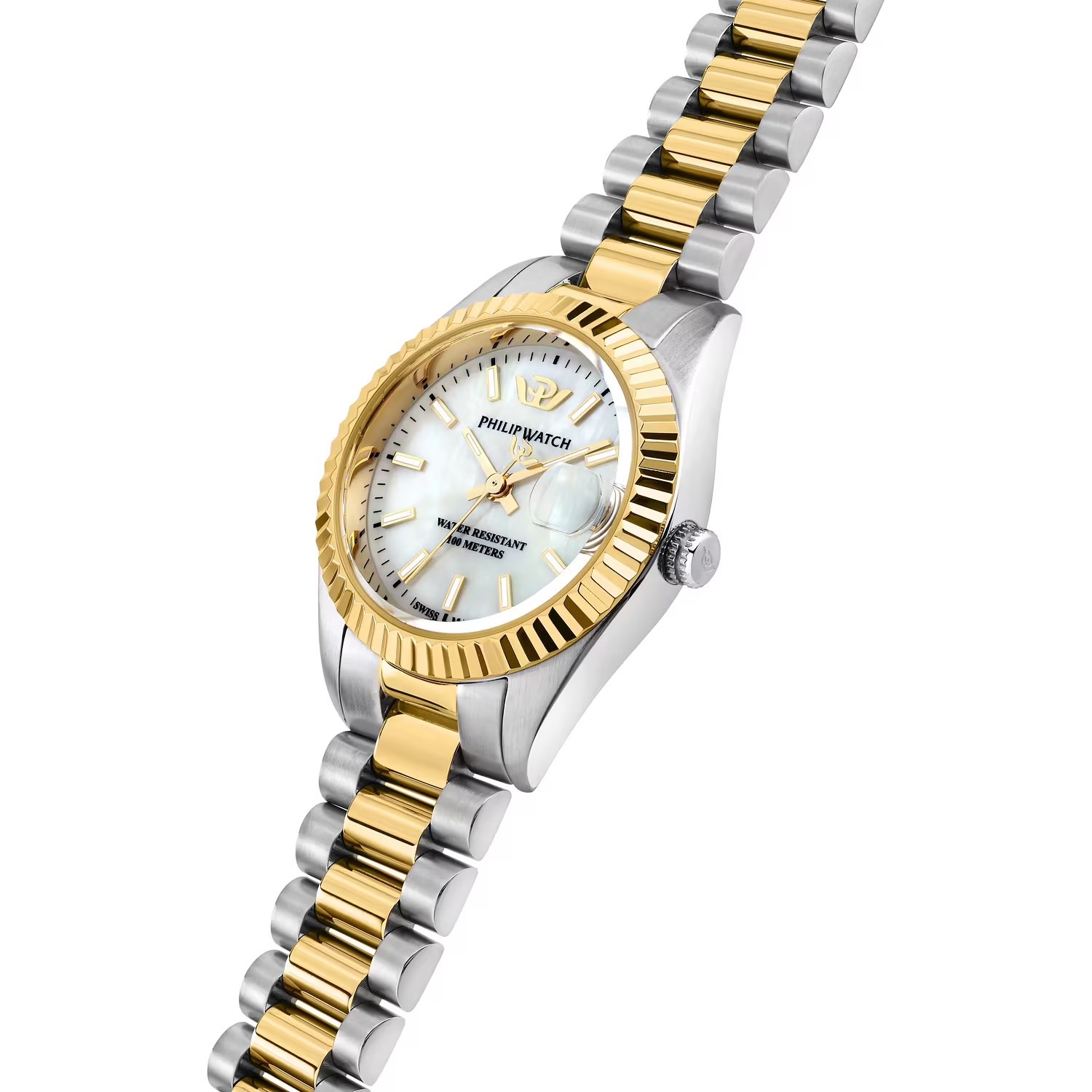 Orologio donna philip watch, R8253597669, collezione caribe urban, movimento al quarzo, solo tempo, cassa in acciaio 28mm, quadrante madreperla con datario a bolla, Vetro zaffiro, Fondello a vite, bracciale in acciaio, resistenza all'acqua 10atm