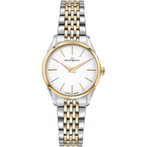 Orologio donna philip watch, R8253217503, collezione roma, movimento al quarzo, solo tempo, cassa in acciaio 32mm, quadrante bianco, cinturino in acciaio/acciaio dorato, resistenza all'acqua 5atm