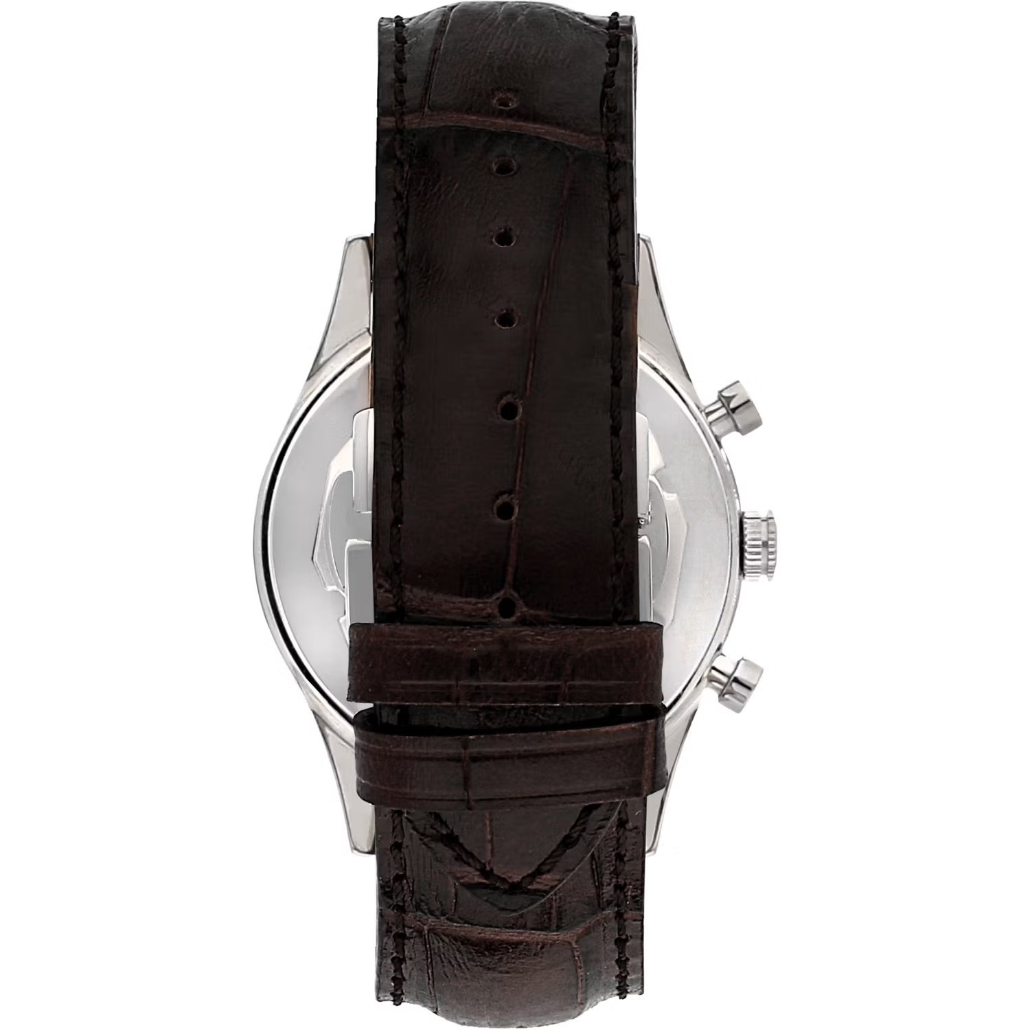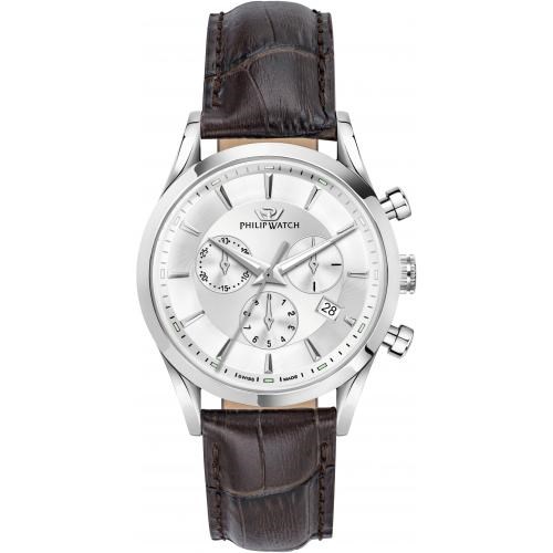 Orologio uomo philip watch, R8271680003, collezione sunray, movimento al quarzo, cronografo, cassa in acciaio 39mm, quadrante bianco con datario, cinturino in pelle marrone, resistenza all'acqua 3atm