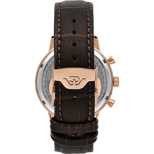 Orologio uomo philip watch, R8271680004, collezione sunray, movimento al quarzo, cronografo, cassa in acciaio rosa 41mm, quadrante bianco con datario, cinturino in pelle, resistenza all'acqua 5atm