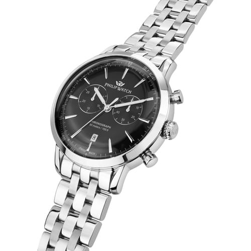Orologio uomo philip watch, R8273680001, collezione sunray, movimento al quarzo, cronografo, cassa in acciaio 41mm, quadrante nero con datario, resistenza all'acqua 5atm