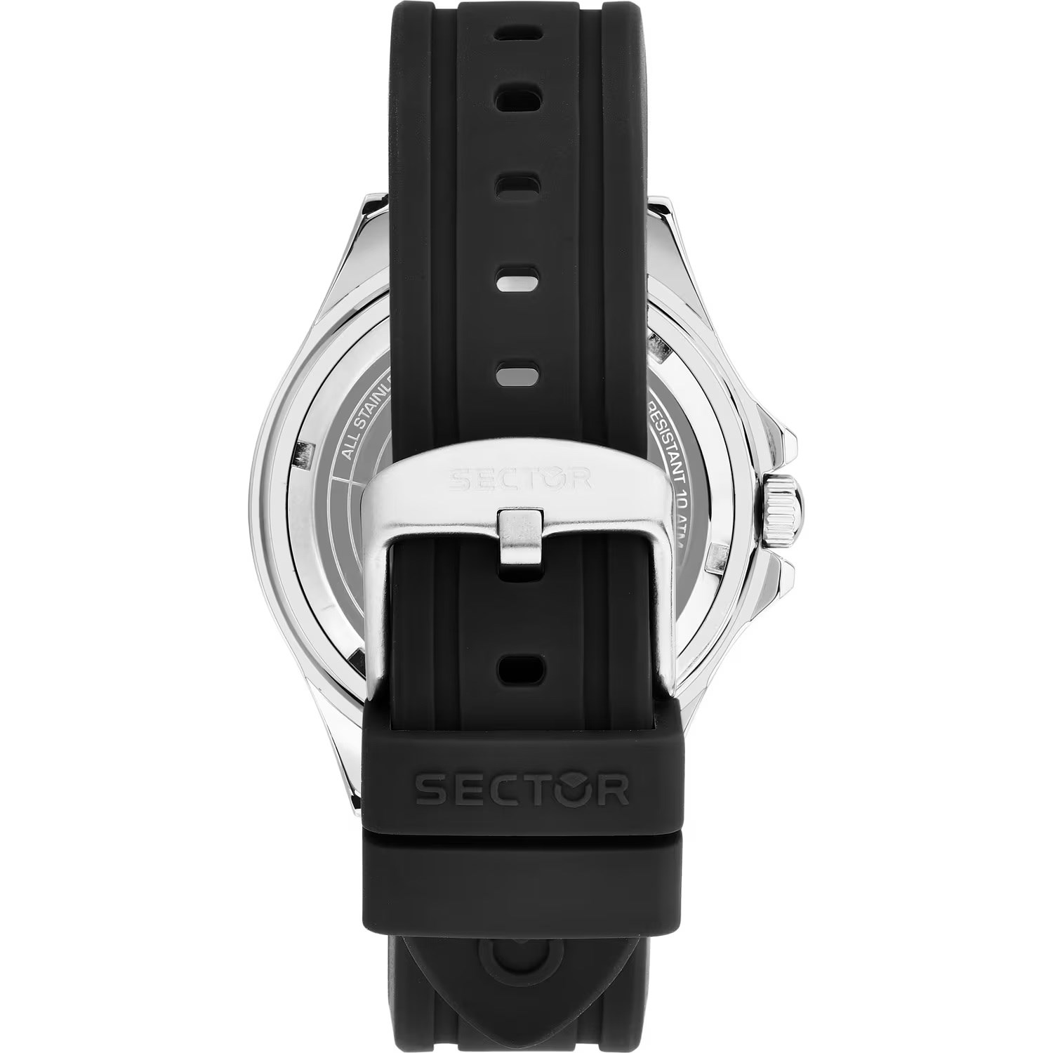 Orologio uomo sector, R3251161062, collezione 230, movimento al quarzo, solo tempo, cassa in acciaio 43mm, quadrante nero con datario a bolla, cinturino in silicone, resistenza all'acqua 10atm