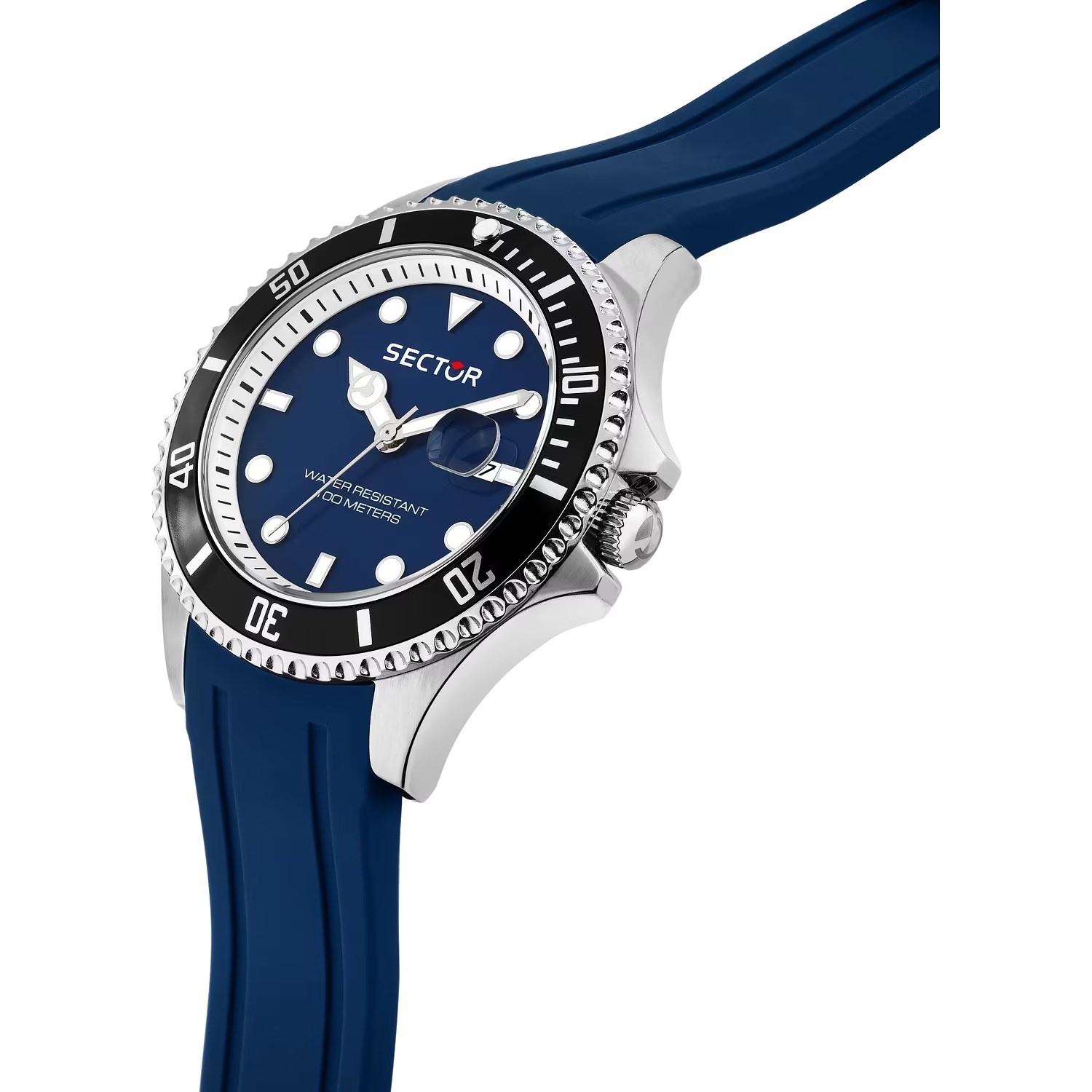 Orologio uomo sector, R3251161063, collezione 230, movimento al uarzo, solo tempo, cassa in acciaio 43mm, quadrante blu con datario a bolla, cinturino in silicone, resistenza all'acqua 10atm