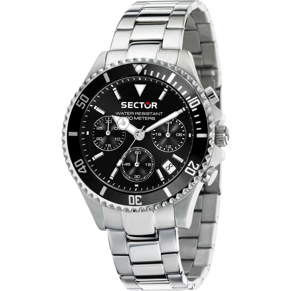 Orologio uomo sector, R3273661009, collezione 230, novità; movimento quarzo, cronografo, cassa in acciaio 50, 2 x 43mm, quadrante nero, bracciale in metallo, resistenza all'acqua 10atm