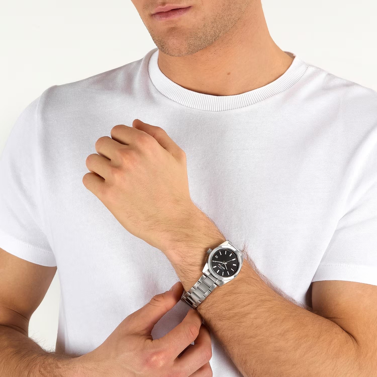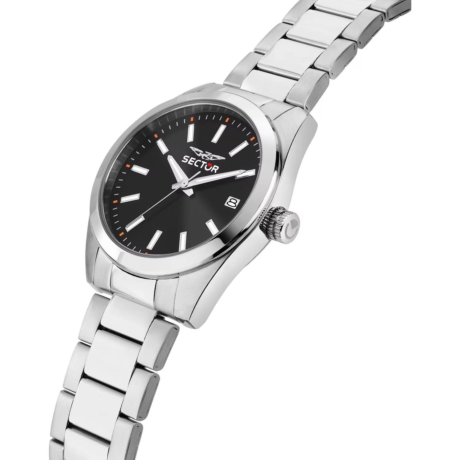 Orologio uomo sector, R3253240027, collezione 240, movimento al quarzo, solo tempo, cassa in acciaio 37mm, quadrante nero con datario, bracciale in acciaio, resistenza all'acqua 5atm