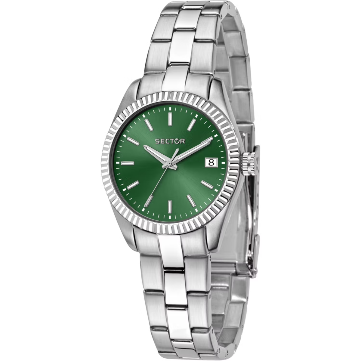 Orologio donna sector, R3253240508, collezione 240, movimento al quarzo, solo tempo, cassa in acciaio 32mm, quadrante verde con datario, bracciale in acciaio, resistenza all'acqua 5atm