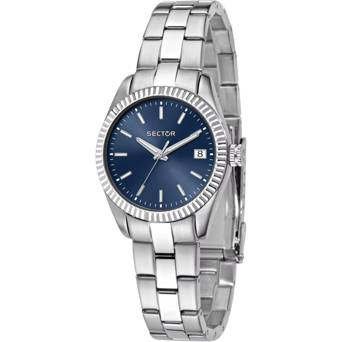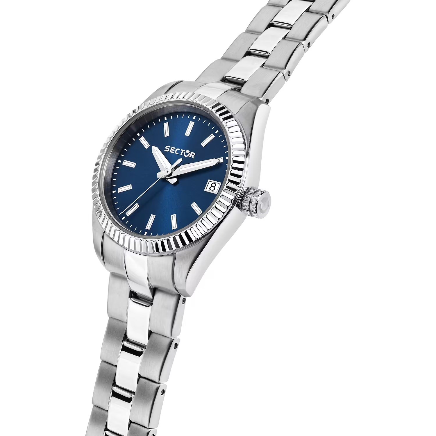 Orologio donna sector, R3253240509, collezione 240, movimento al quarzo, solo tempo, cassa in acciaio 32mm, quadrante blu con datario, bracciale in acciaio, resistenza all'acqua 5atm