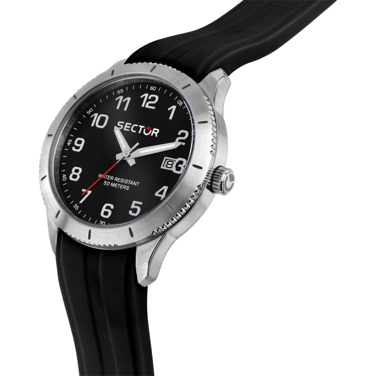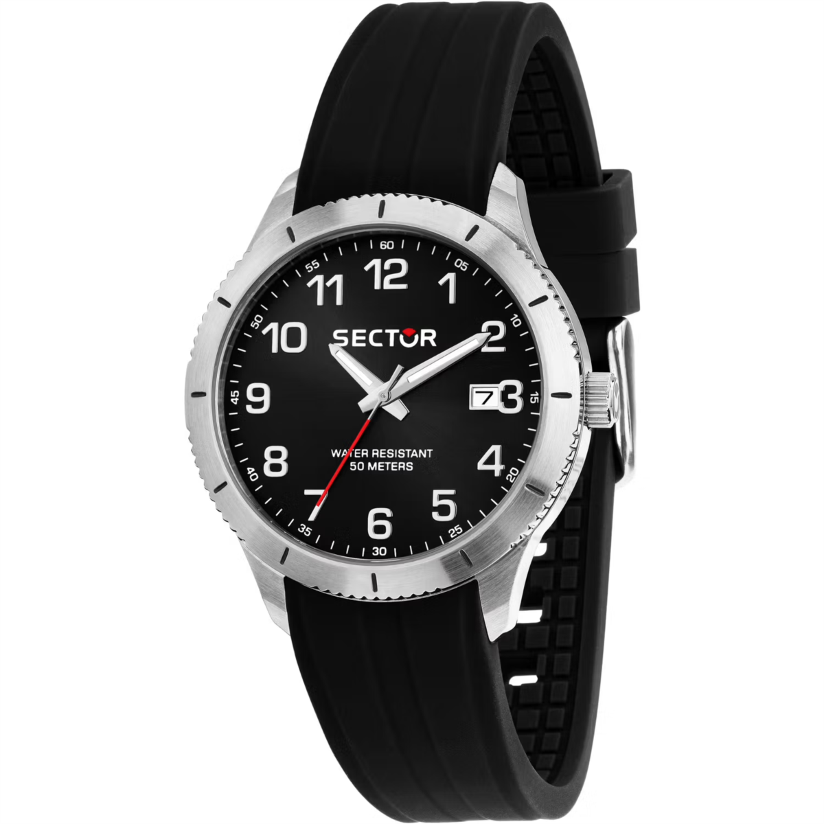 Orologio uomo sector, R3251578014, collezione 270, movimento al quarzo, solo tempo, cassa in acciaio 37mm, quadrante nero con datario, cinturino in silicone, resistenza all'acqua 5atm