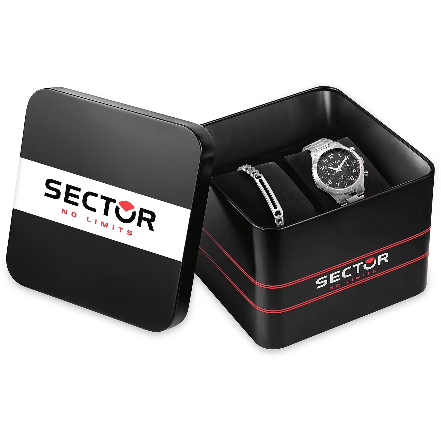 Orologio e bracciale uomo sector, R3253578020, collezione 270, movimento al quarzo, multifunzione, cassa in acciaio 37mm, quadrante nero con datario, bracciale in acciaio, resistenza all'acqua 5atm bracciale in acciaio