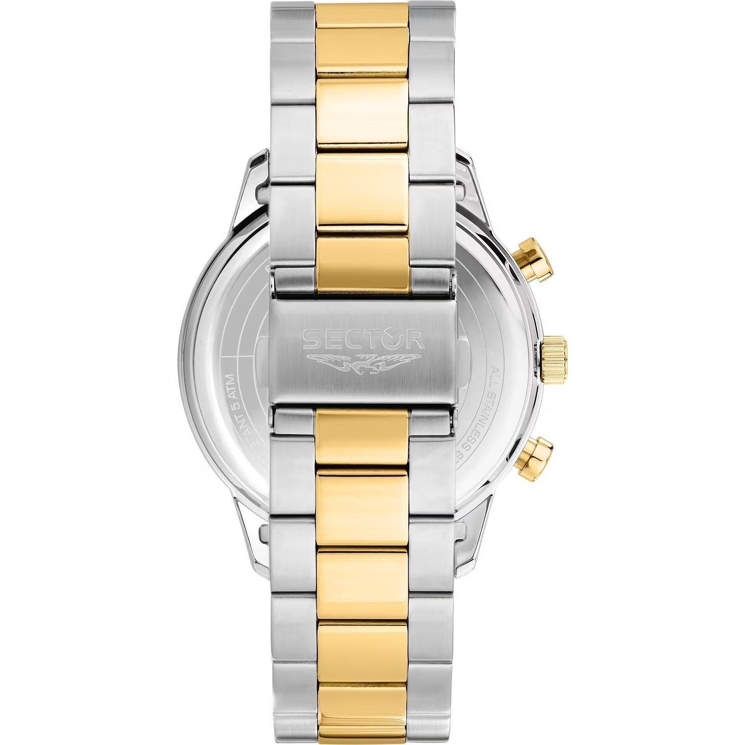 Orologio uomo sector, R3273778009, collezione 270, movimento al quarzo, cronografo, cassa in acciaio 45mm, quadrante nero con datario, bracciale in acciaio, resistenza all'acqua 10atm