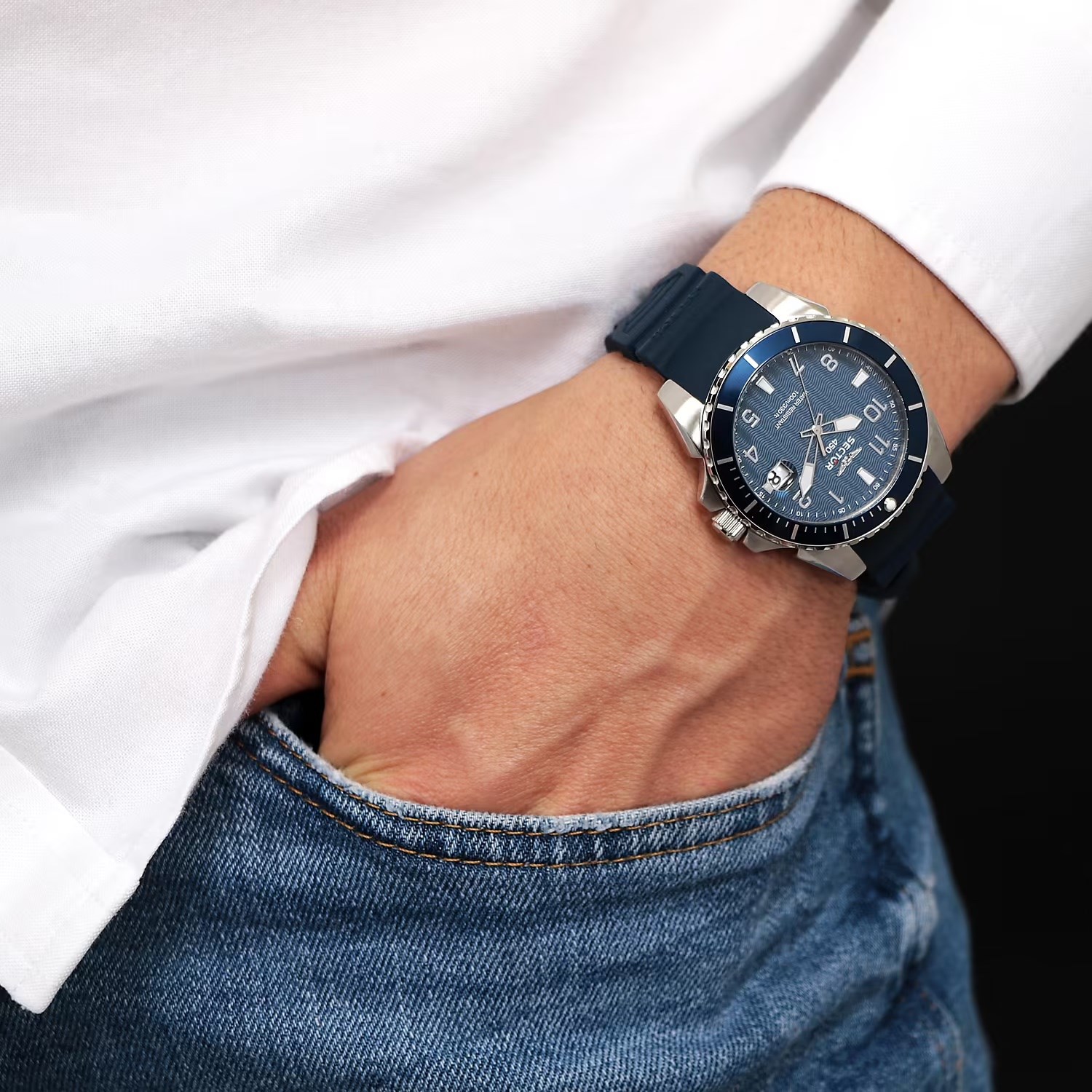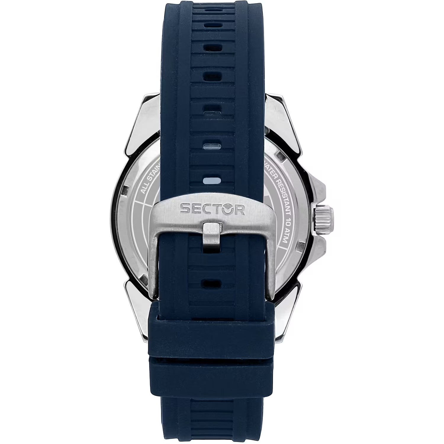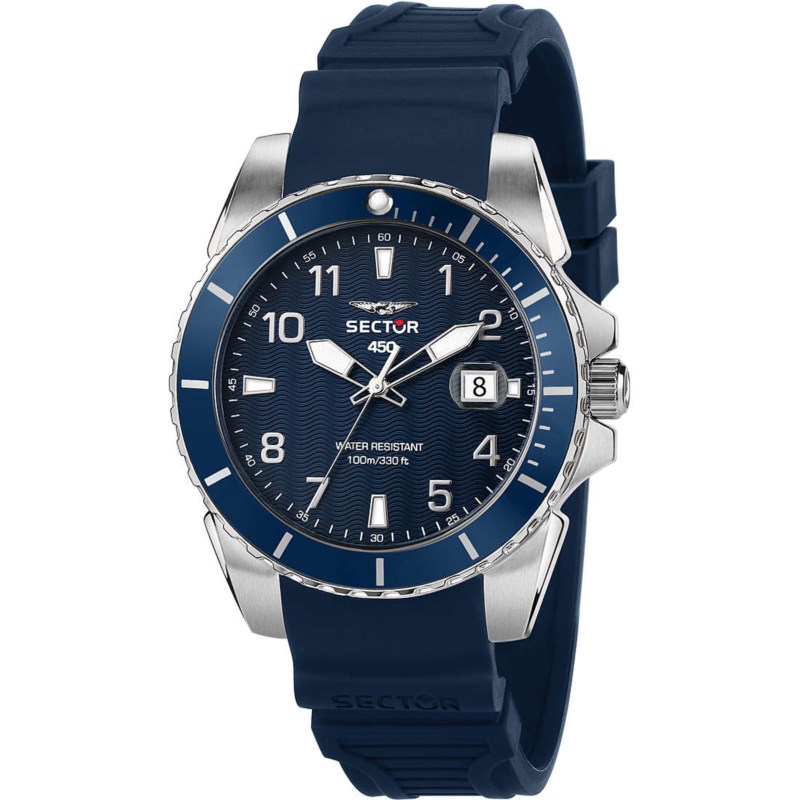 Orologio uomo sector, R3251276003, collezione 450, movimento al quarzo, solo tempo, cassa in acciaio 41mm, quadrante blu con datario a bolla, cinturino in silicone blu, resistenza all'acqua 10atm
