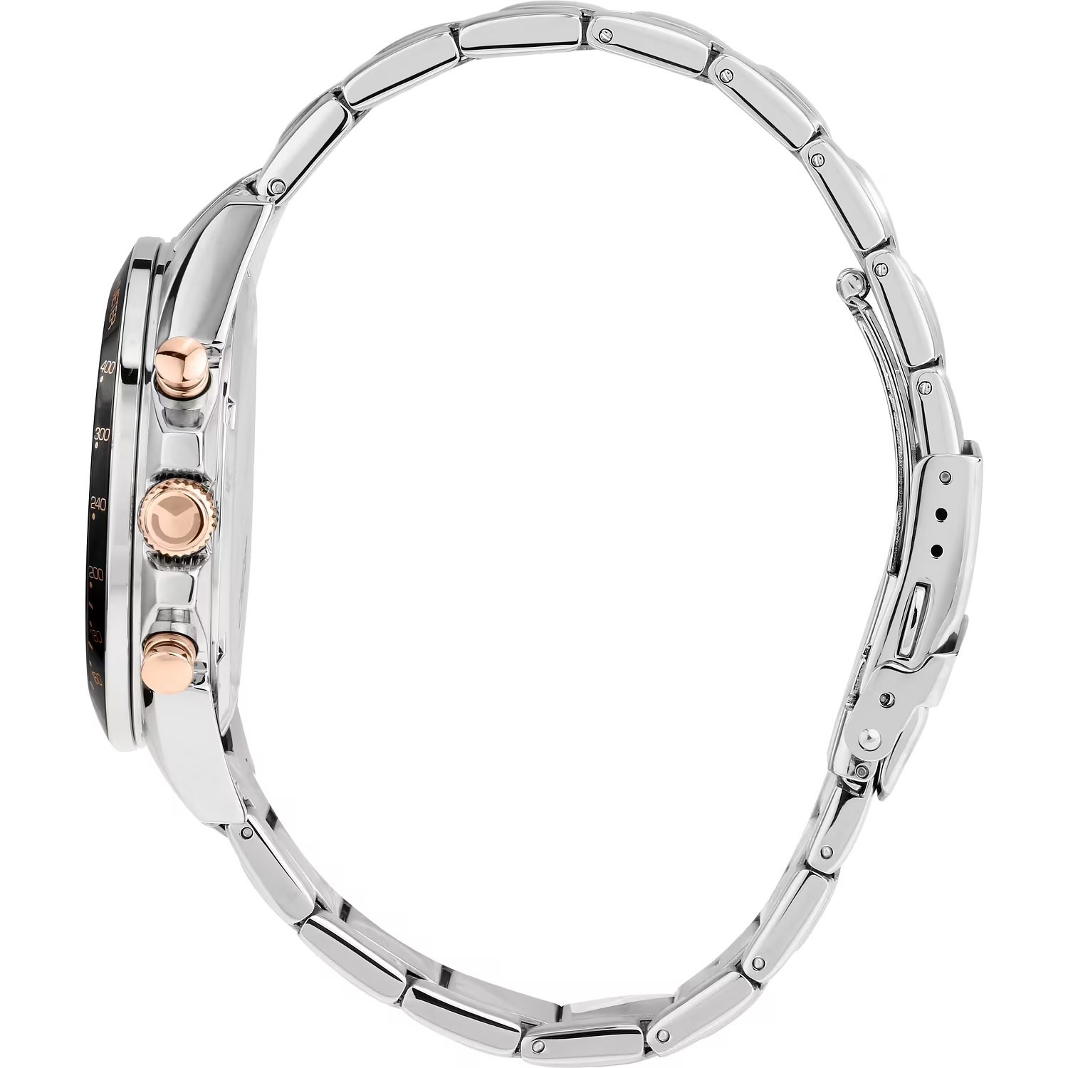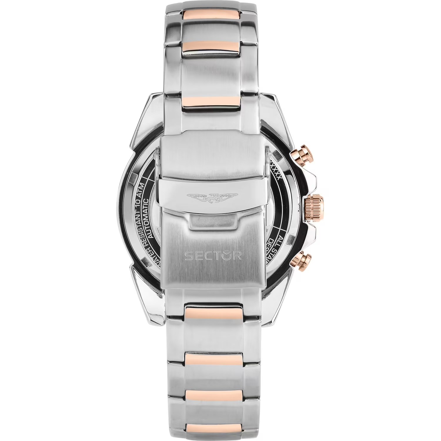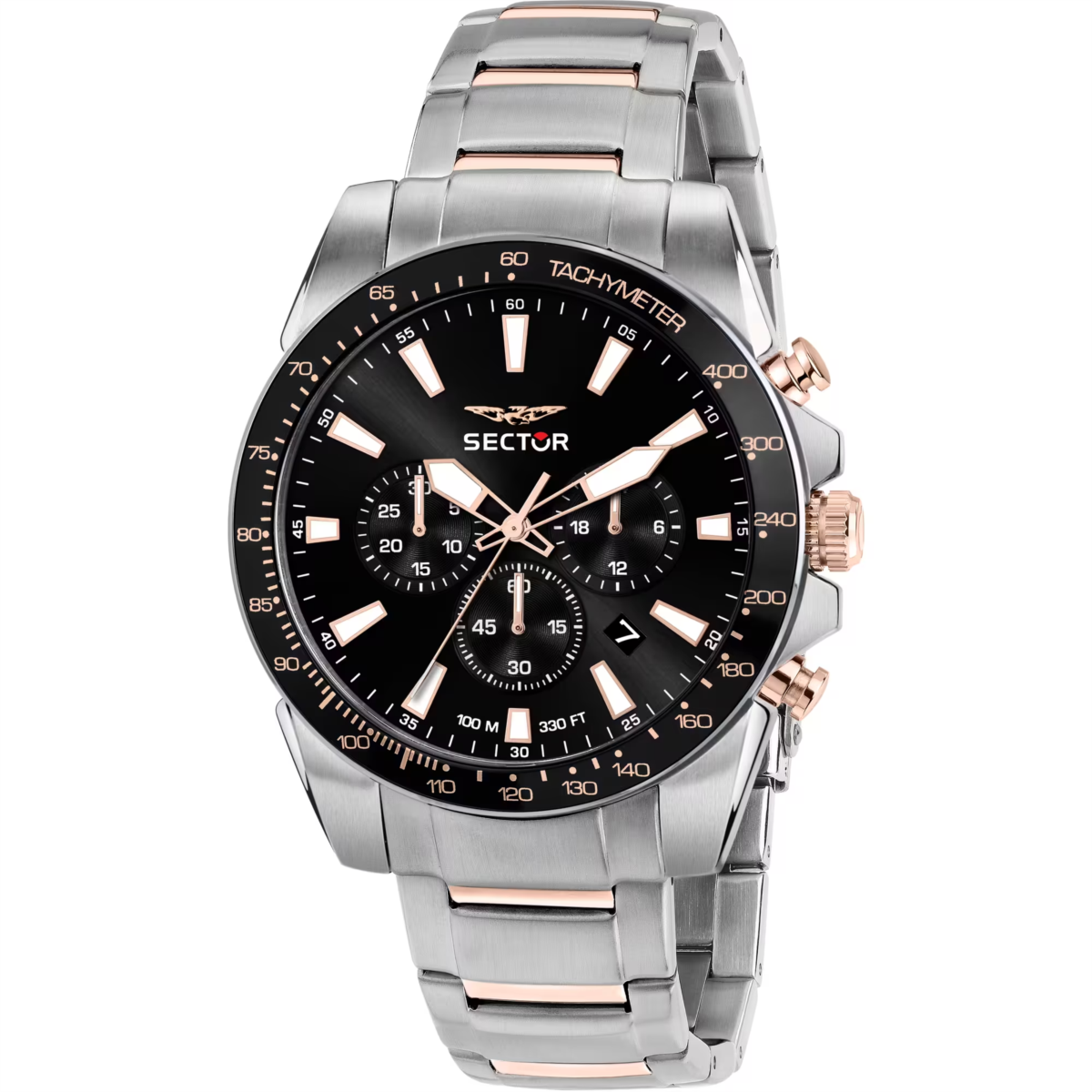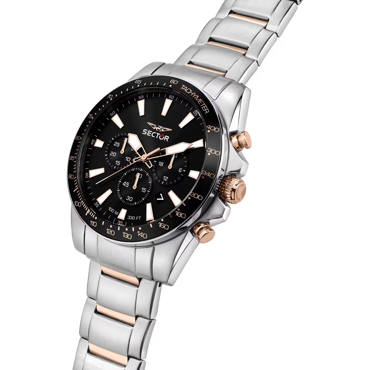Orologio uomo sector, R3273776007, collezione 450, movimento al quarzo, cronografo, cassa in acciaio 43mm, quadrante nero con datario, vetro minerale, bracciale in acciaio, resistenza all'acqua 10atm