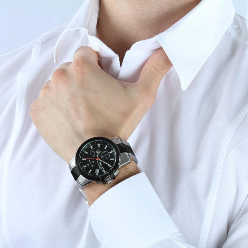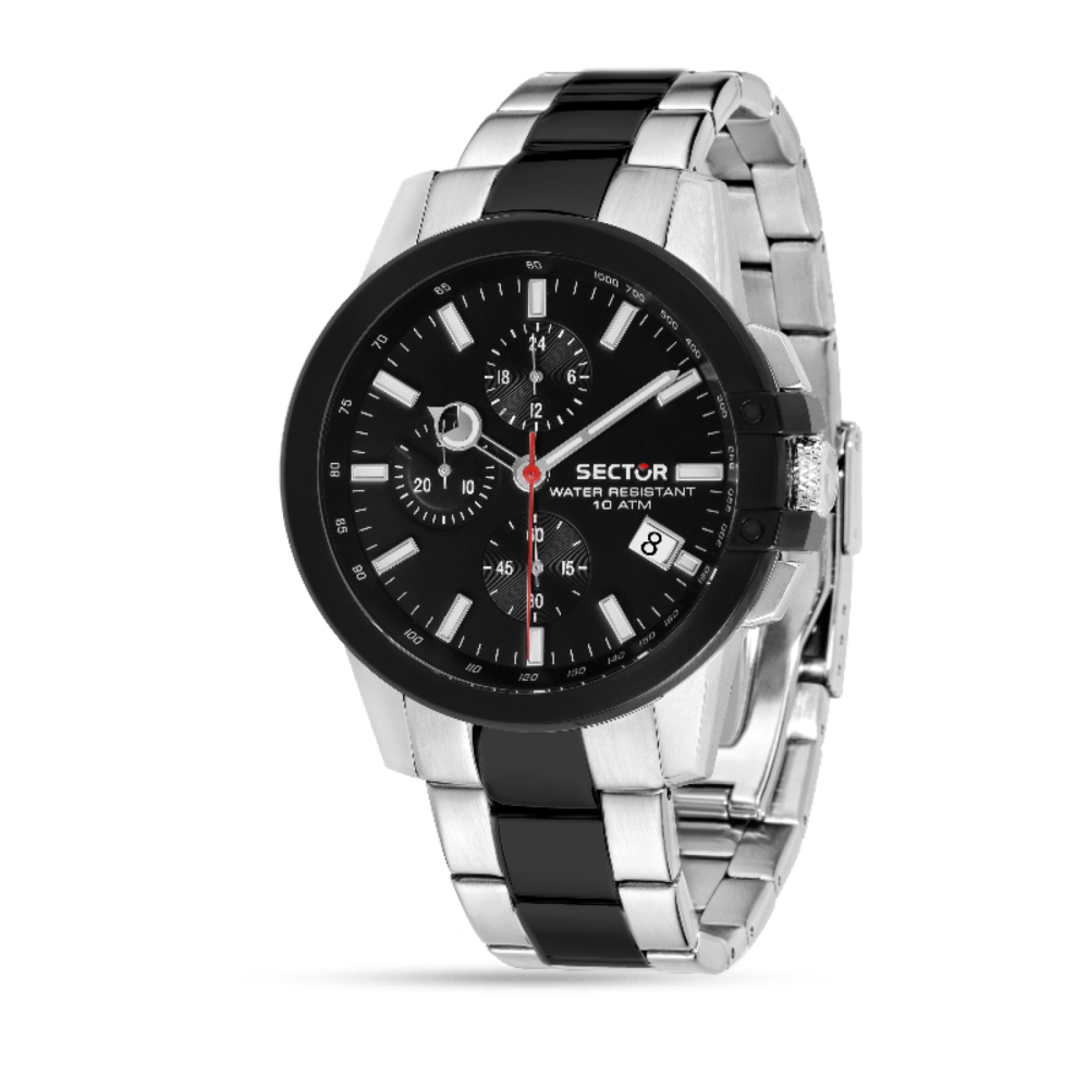 Orologio uomo sector, R3273797002, collezione 480, movimento:meccanico automaticoFUNZIONE:CRONOGRAFO, MISURA CASSA:55X45MM, MATERIALE CASSA:LUCIDO E SATINATO, COLORE QUADRANTE:NERO OPACO, VETRO:TRATTAMENTO VETRO ZAFFIRO, MATERIALE CINTURINO:BRACCIALE IN METALLO, COLORE CINTURINO:BLACK/SILVER, FIBBIA:SECRITY CLAPS BUCKLE, RESISTENZA ALL'ACQUA:5 ATM,