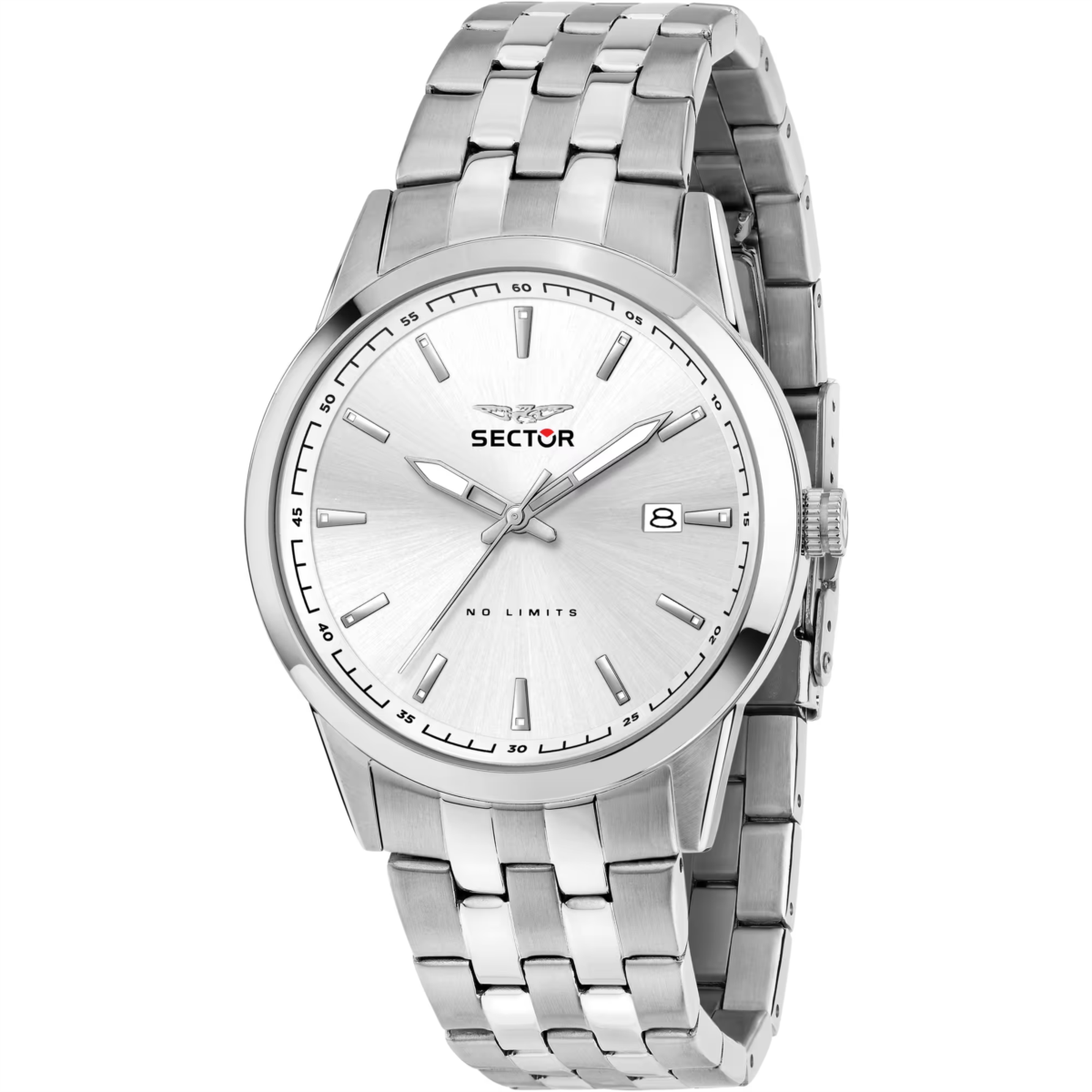 Orologio uomo sector, R3253517030, collezione 660, movimento al quarzo, solo tempo, cassa in acciaio 41mm, quadrante silver con datario, vetro minerale, bracciale in acciaio, resistenza all'acqua 5atm