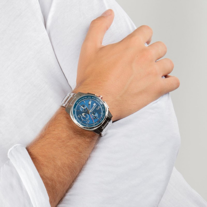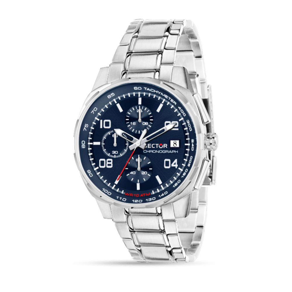 Orologio uomo sector, R3273803002, collezione collezione 890 movimento:quarzo, cronografo, cassa in acciaio da 44 mm con quadrante BLU, cinturino in acciaio, resistente all'acqua per 10 atm