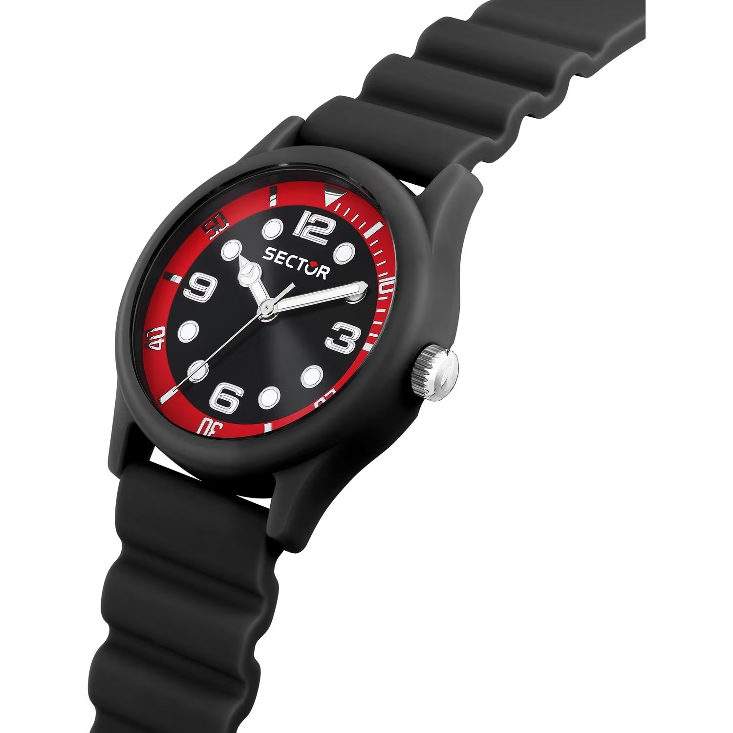Orologio uomo sector, R3251318001, collezione h20, movimento al quarzo, solo tempo, cassa in silicone 41mm, quadrante nero, cinturino in silicone, resistenza all'acqua 5atm