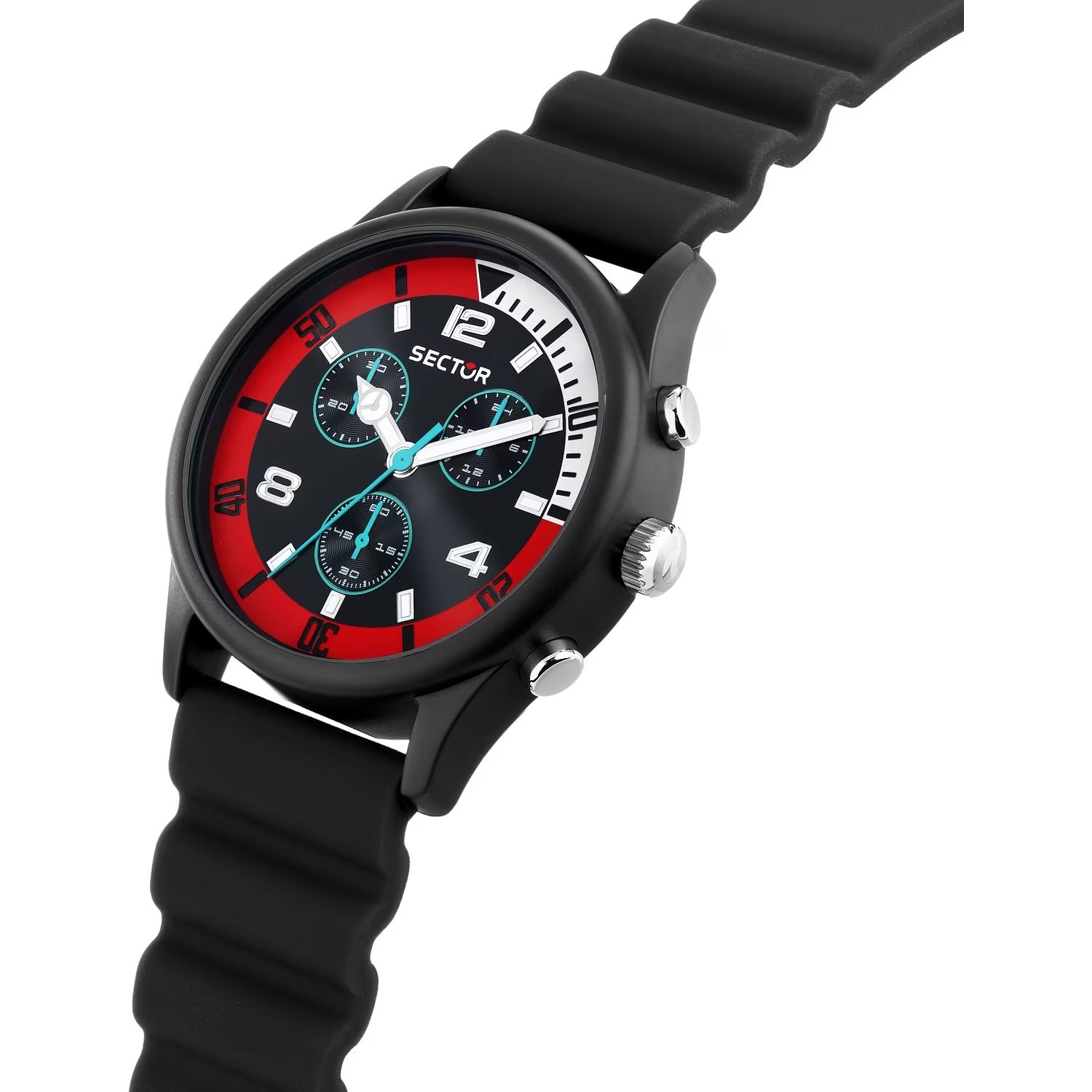 Orologio uomo sector, R3271718001, collezione h20, movimento al quarzo, cronografo, cassa in silicone 43mm, quadrante nero, cinturino in silicone, resistenza all'acqua 10atm